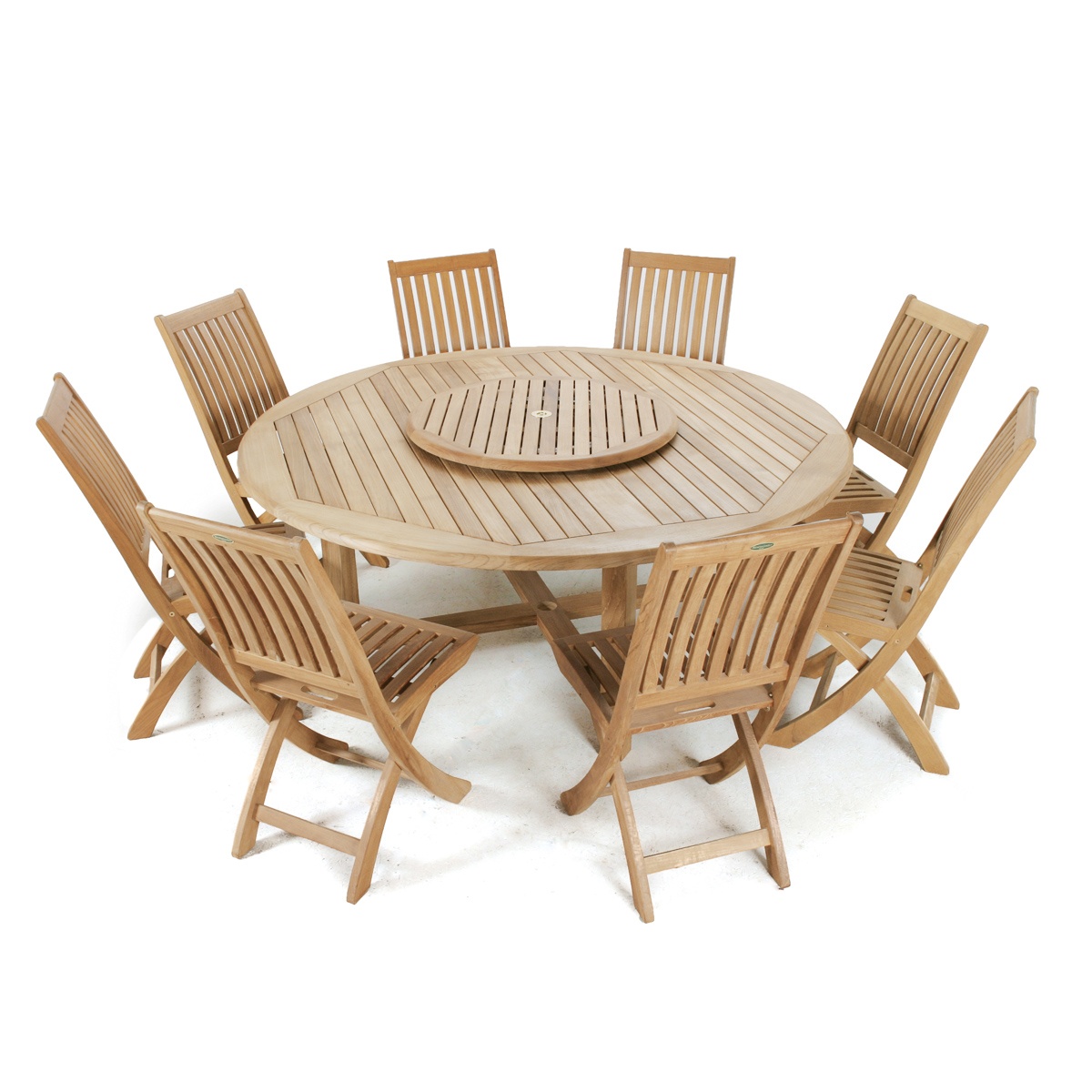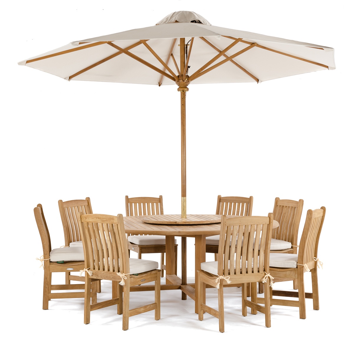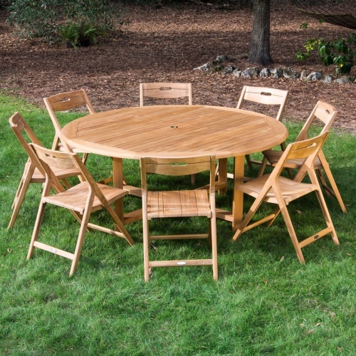 An optional Lazy Susan provides all around access to the picnic or dinner essentials. The table can also accept our Teak Umbrella with a parasol base. All standard height Westminster Teak Dining Chairs will match.