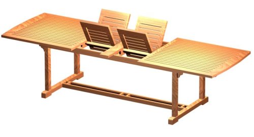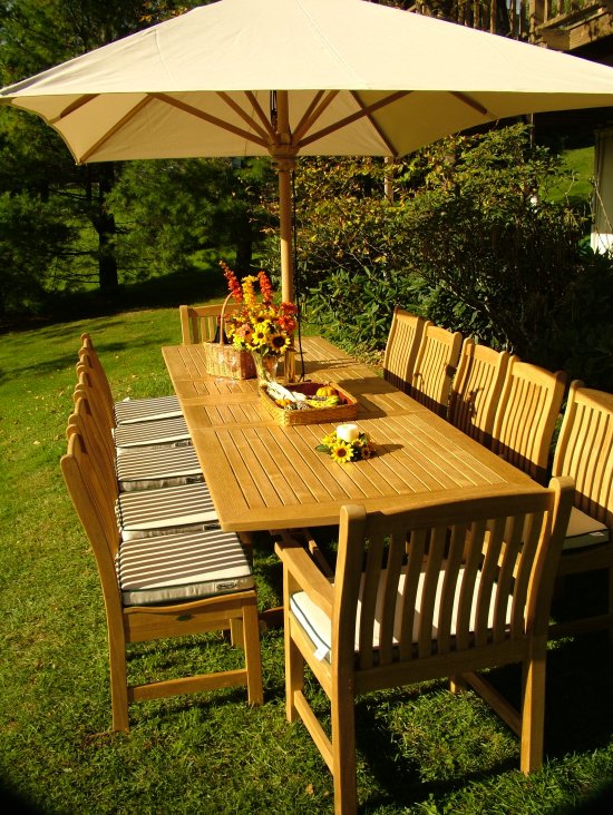 The 2004 Westminster Teak Grand Table is discontinued item and is one of our largest teak tables that seats 12 comfortably. The 2004 model features a new leaf storage system and has ends that are slightly arched.