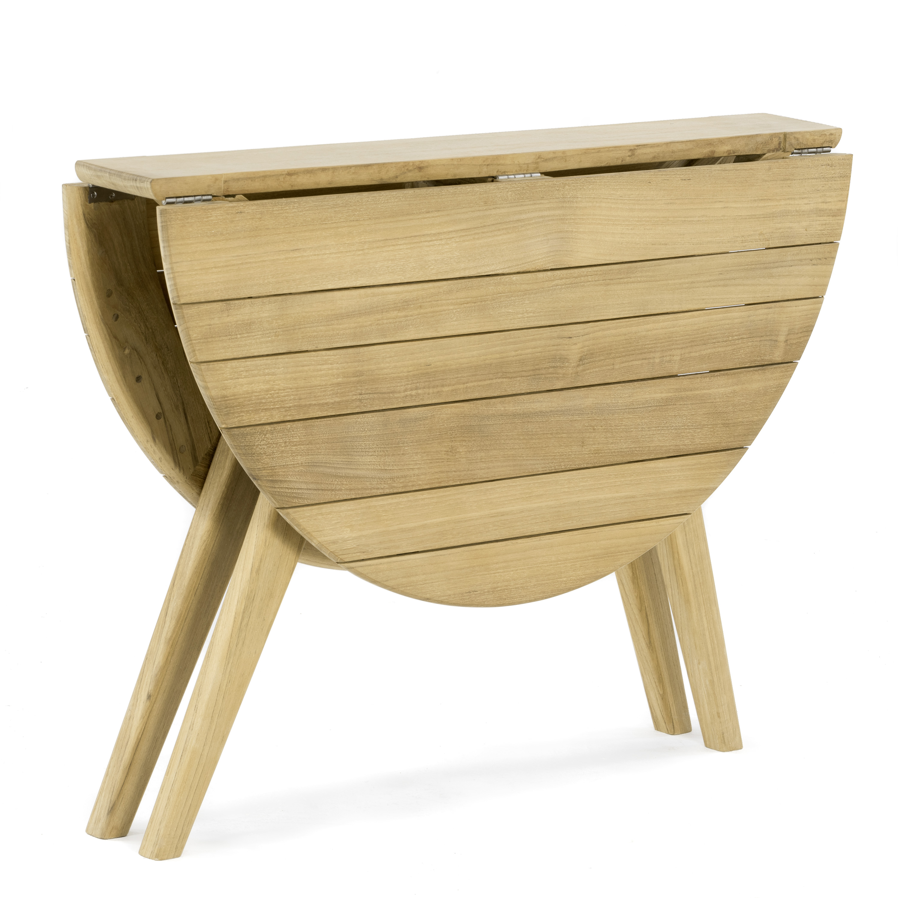 The 42" round table is simply beautiful and the tabletop has a sturdy metal support; easily folds and this piece is the perfect complement to the Surf teak chairs. Very satisfied with this purchase. --Christopher N., New Orleans, Louisiana, December 4, 2019