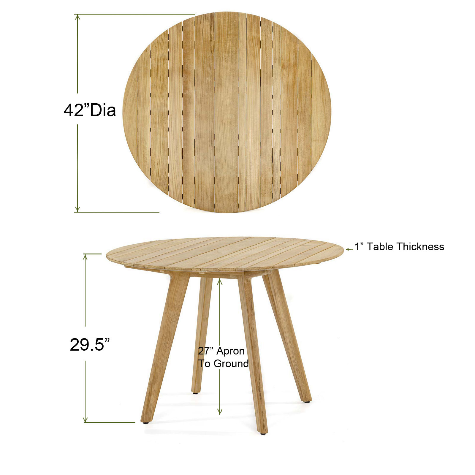 The 42" round table is simply beautiful and the tabletop has a sturdy metal support; legs are easily installed and this piece is the perfect complement to the Surf teak chairs. Very satisfied with this purchase. --Christopher N., New Orleans, Louisiana, December 4, 2019