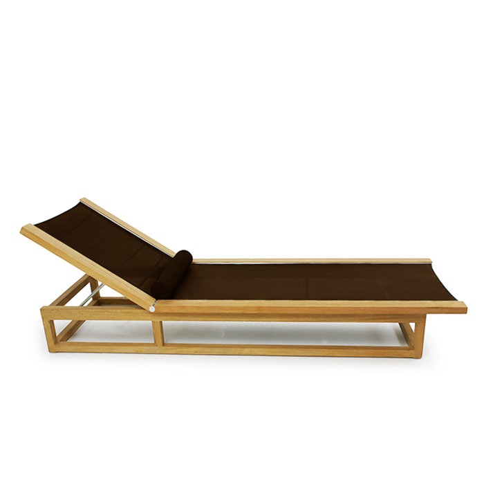 Part of the Maya Collection, this high-style design sun lounger has classic material pairings: Grade A solid teak, and high performance Textilene® mesh, a durable PVC coated fabric that is breathable, flame retardant, as well as UV, mildew, and tear resistant. Perfect for hot summer days by the pool, this lounger cradles you for hours of comfort with the included bolster cushion.