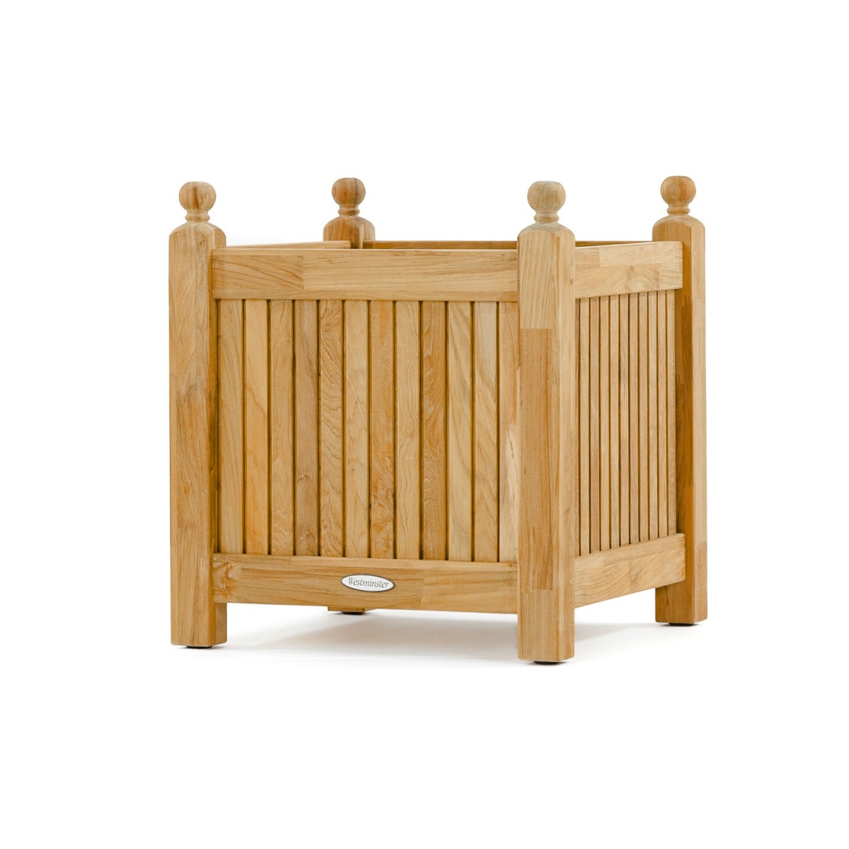 The classic knobs at each corner make these eye catching Teak Planter Boxes, but when combined with the Teak Planter Seat Panel (18110), it creates a beautiful respite along a garden path or perimeter detail for your deck. Ideal for an evergreen for year round color or potted plants for seasonal change, whatever your choice these teak planter boxes will do it in style. All Westminster Planters are made from Eco-friendly plantation grown teak.