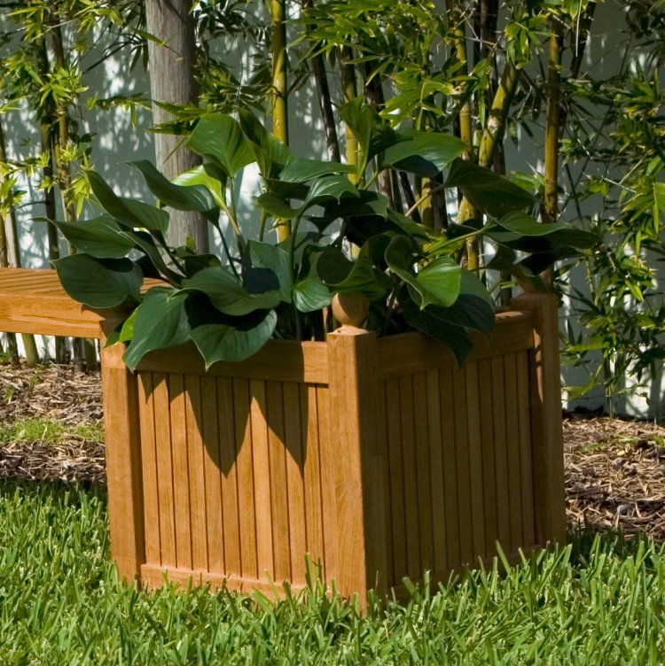 Potted plants are recommended for all Westminster planters. If pouring soil directly into the planter, the use of a .5 mil or thicker plastic liner is highly recommended to preserve and extend the life of the teak wood.