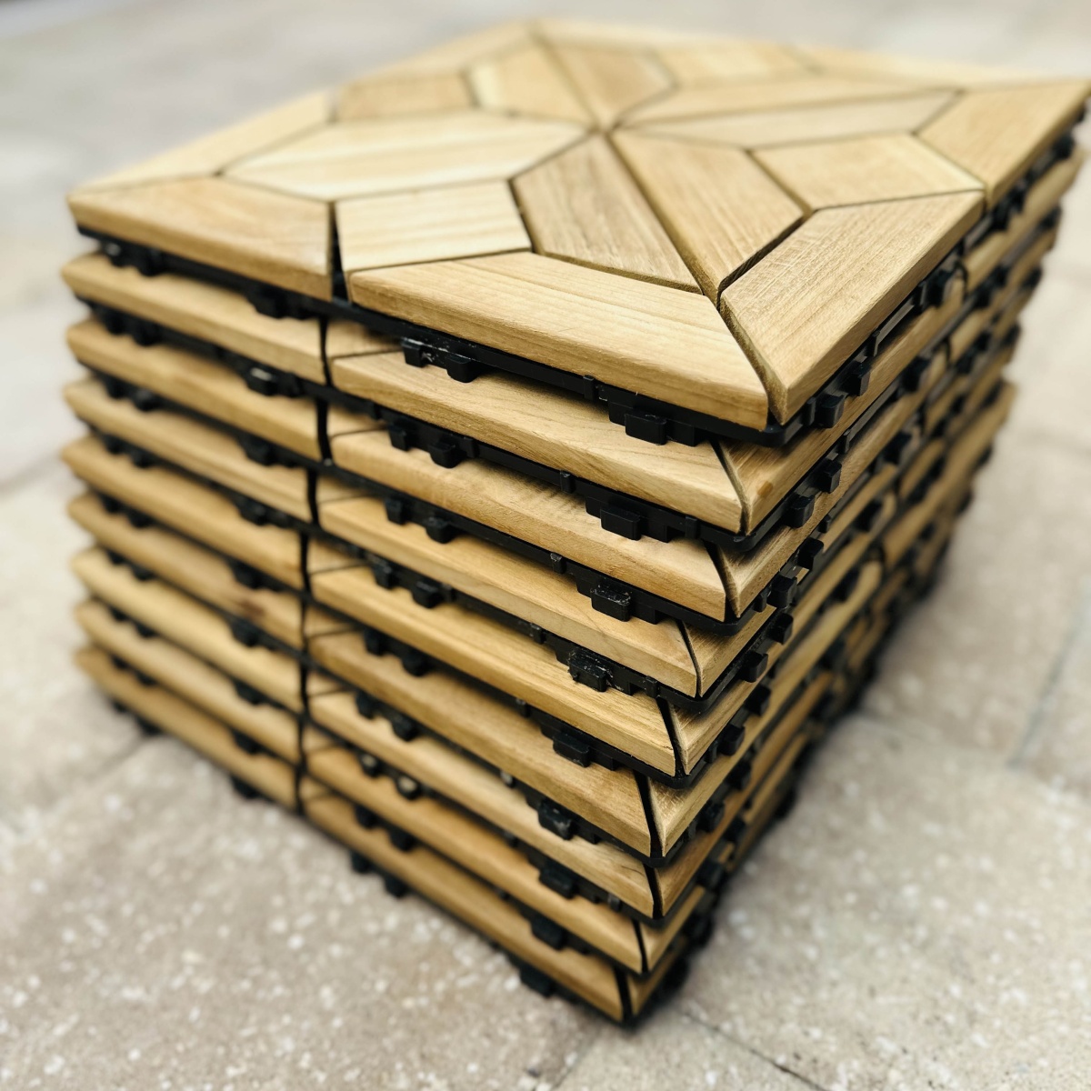 Elevate your indoor and outdoor spaces with our premium teak floor tiles, available in versatile 12" x 12" and exclusive 18" x 18" sizes. Designed for use in decks, patios, living rooms, kitchens, bathrooms, showers, and more, these tiles seamlessly combine sophistication with long-lasting durability.
