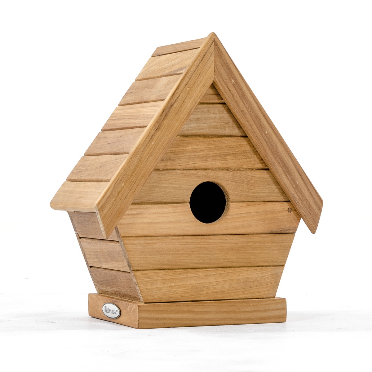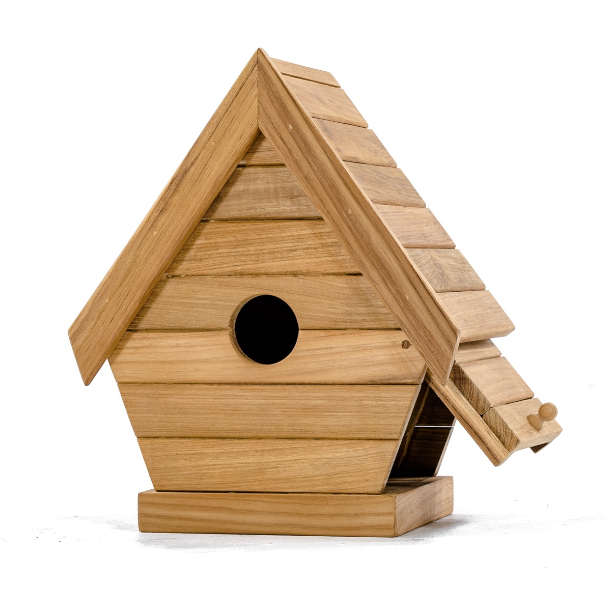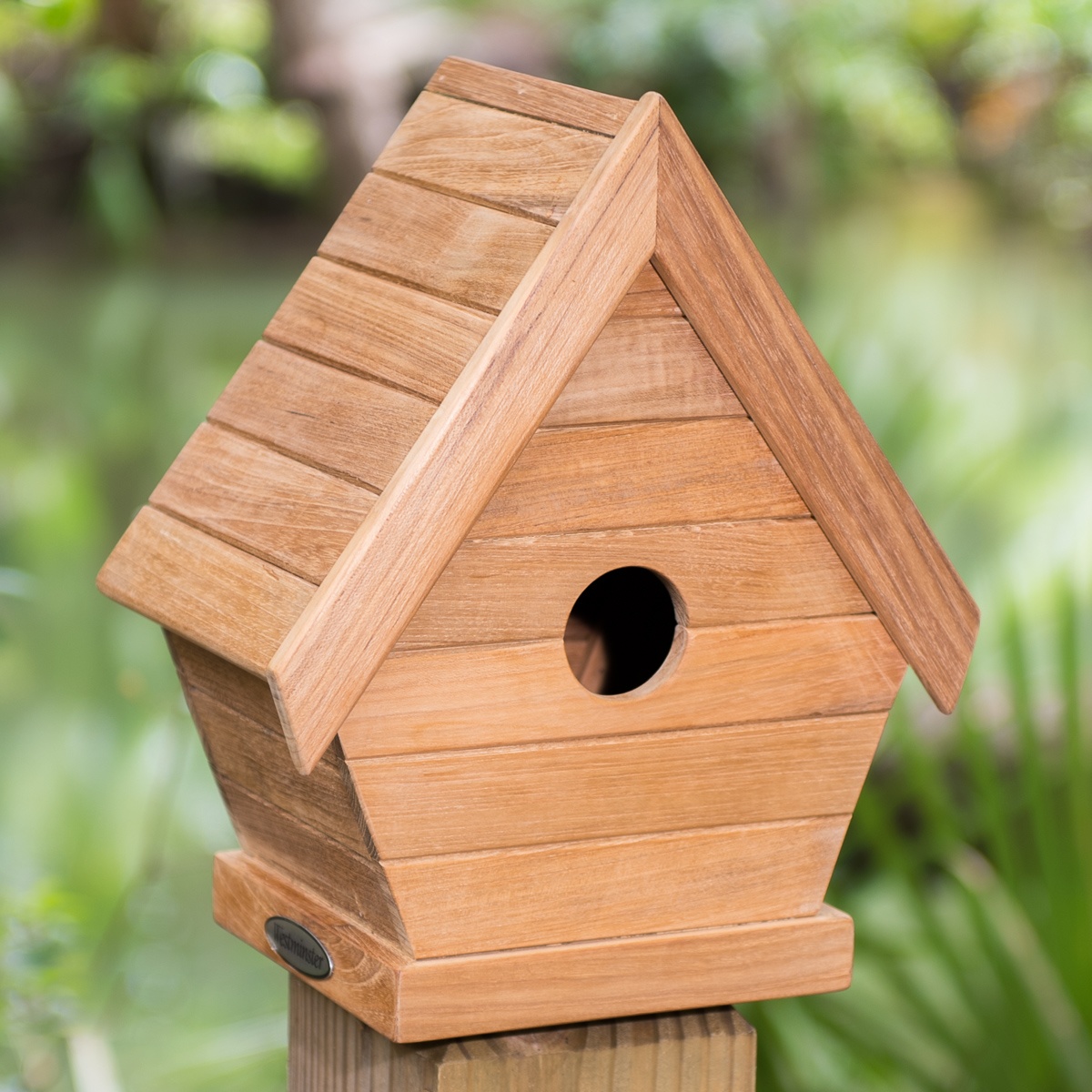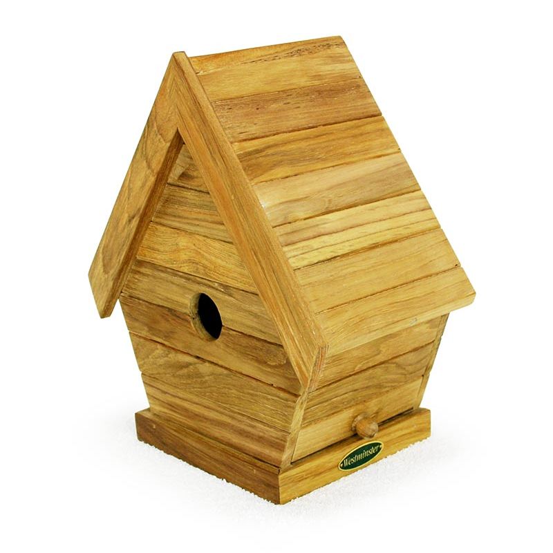 This Teak Bird House features an overhanging roof for better protection from the elements, solid teak for longevity and rugged good looks for bird enthusiasts. Westminster Teak created our bird houses to add to the fun of enjoying your back yard or garden area while inviting nature to join your sanctuary. Monitor the bird populations with your children to encourage wildlife appreciation.