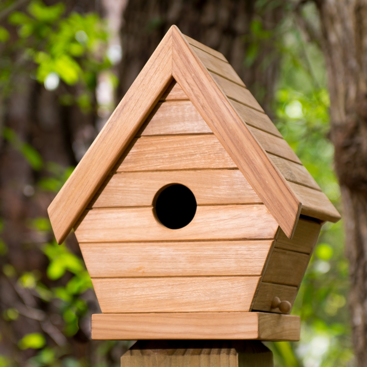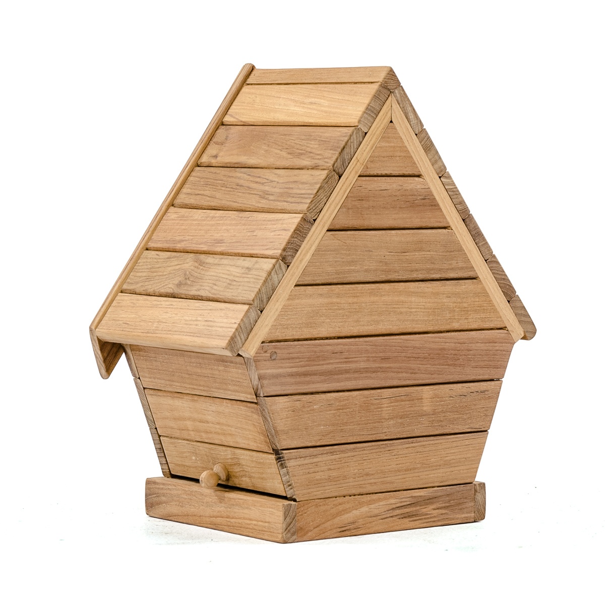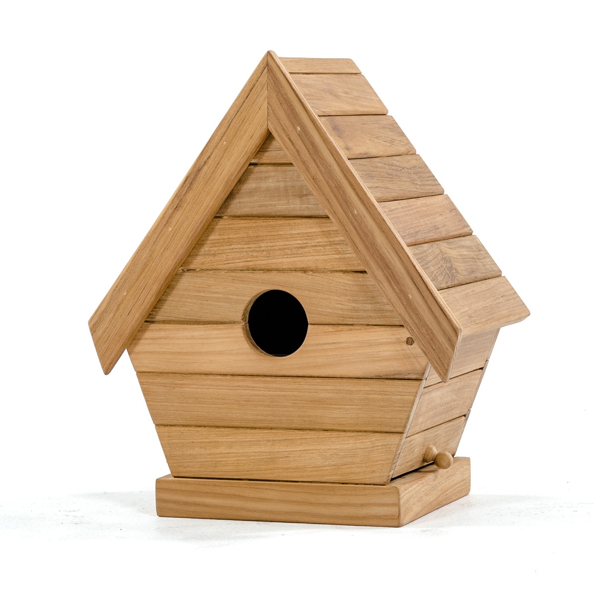 This Teak Bird House features an overhanging roof for better protection from the elements, solid teak for longevity and rugged good looks for bird enthusiasts. Westminster Teak created our bird houses to add to the fun of enjoying your back yard or garden area while inviting nature to join your sanctuary. Monitor the bird populations with your children to encourage wildlife appreciation.