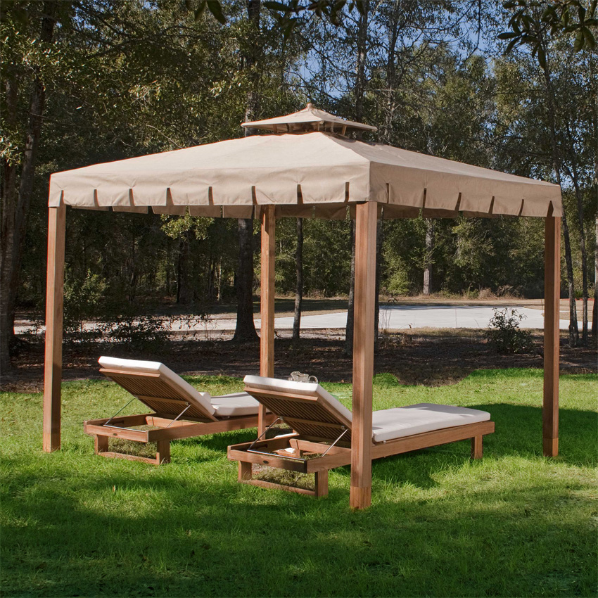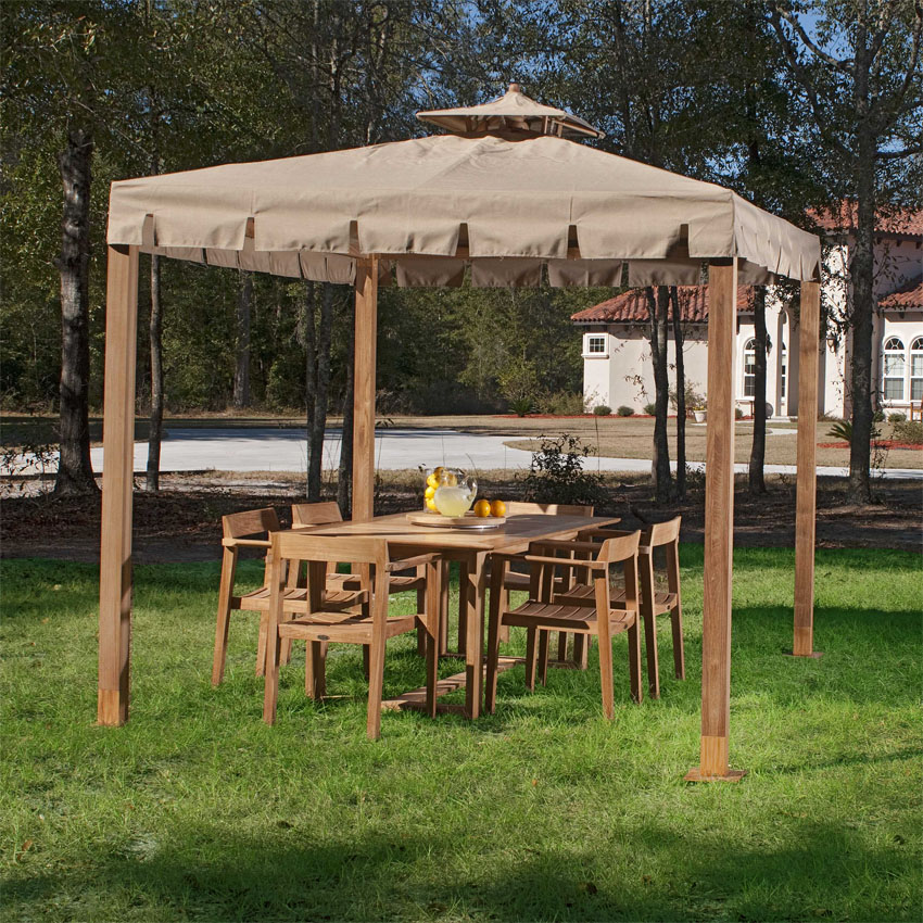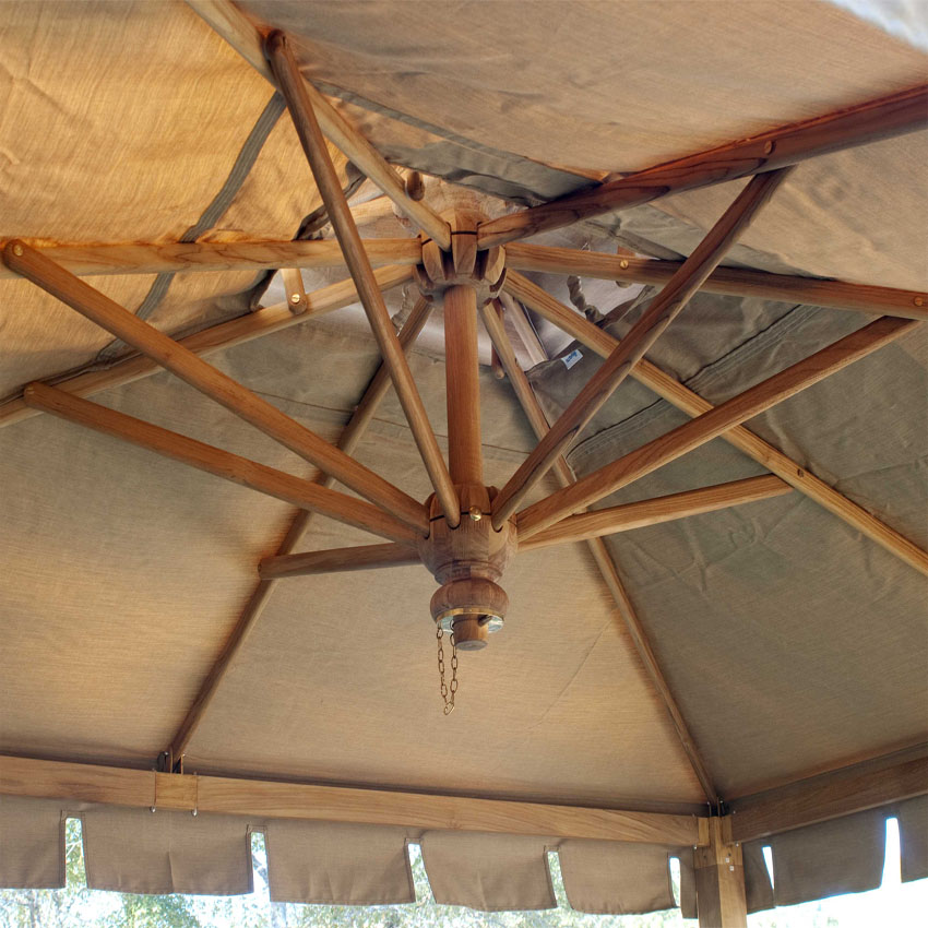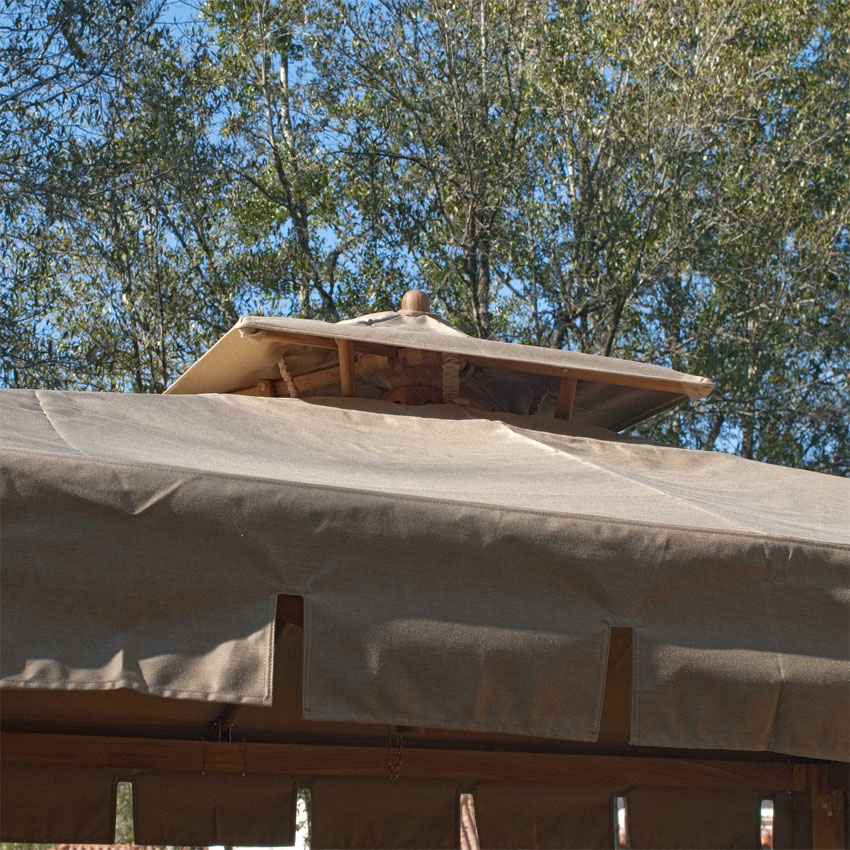 The Westminster Grande Teak Gazebo is designed to be a multipurpose shelter that lasts season to season. With a frame crafted out of solid teak, and a sturdy canopy of Sunbrella fabric, the Westminster Grande Gazebo makes an inviting gesture with its splendor; perfect as a poolside cabana for outdoor social gatherings, as well as a tranquil haven for gardens, parks and spas.