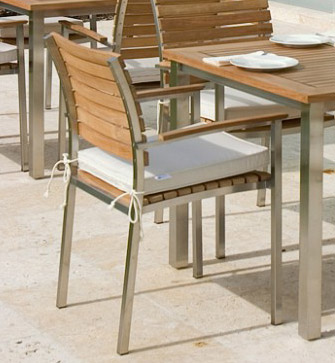 Optional chair cushions made with Quick Dry Foam® core and 100% solution dyed Sunbrella fabrics. Crafted with SVLK Certified Grade A Teak harvested from sustainable plantations in Indonesia, and Stainless Steel. Every piece is precision manufactured to standard specifications for commercial and residential use. Optional Teak Finishes available.