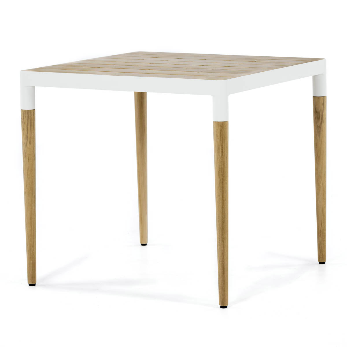 Part of the Bloom Collection. With its fresh take on tabletop design, the Bloom Table brings a new dimension to outdoor dining and style. The Teak Table Top  precision cut design, casts a lively pattern of spring flowers in bloom while under the sun. Tapered Solid Teak Legs add an element of warmth to the otherwise cool aluminum and teak top further increases the table's functionality. Its simple knockdown design makes assembly easy and allows for better and less costly shipping. Customizable tabletop design offered for volume orders.