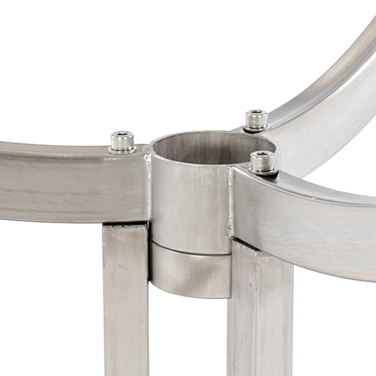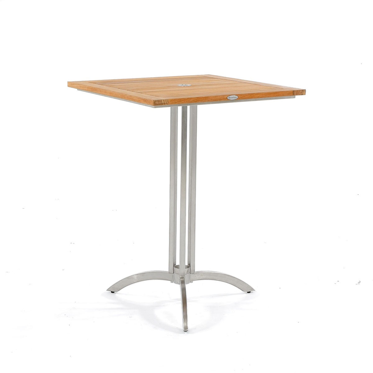 With the interplay of 304 Stainless Steel and Teak Wood, the Vogue Square Bar Table defines contemporary dining. Standing at 40 inches high and 30 inches x 30 inches square, it can seat up to four. The tabletop is caulked with Sikaflex, a high-grade polyurethane sealant that prevents liquids from seeping through while providing a nautical appeal. Part of the Vogue Collection.