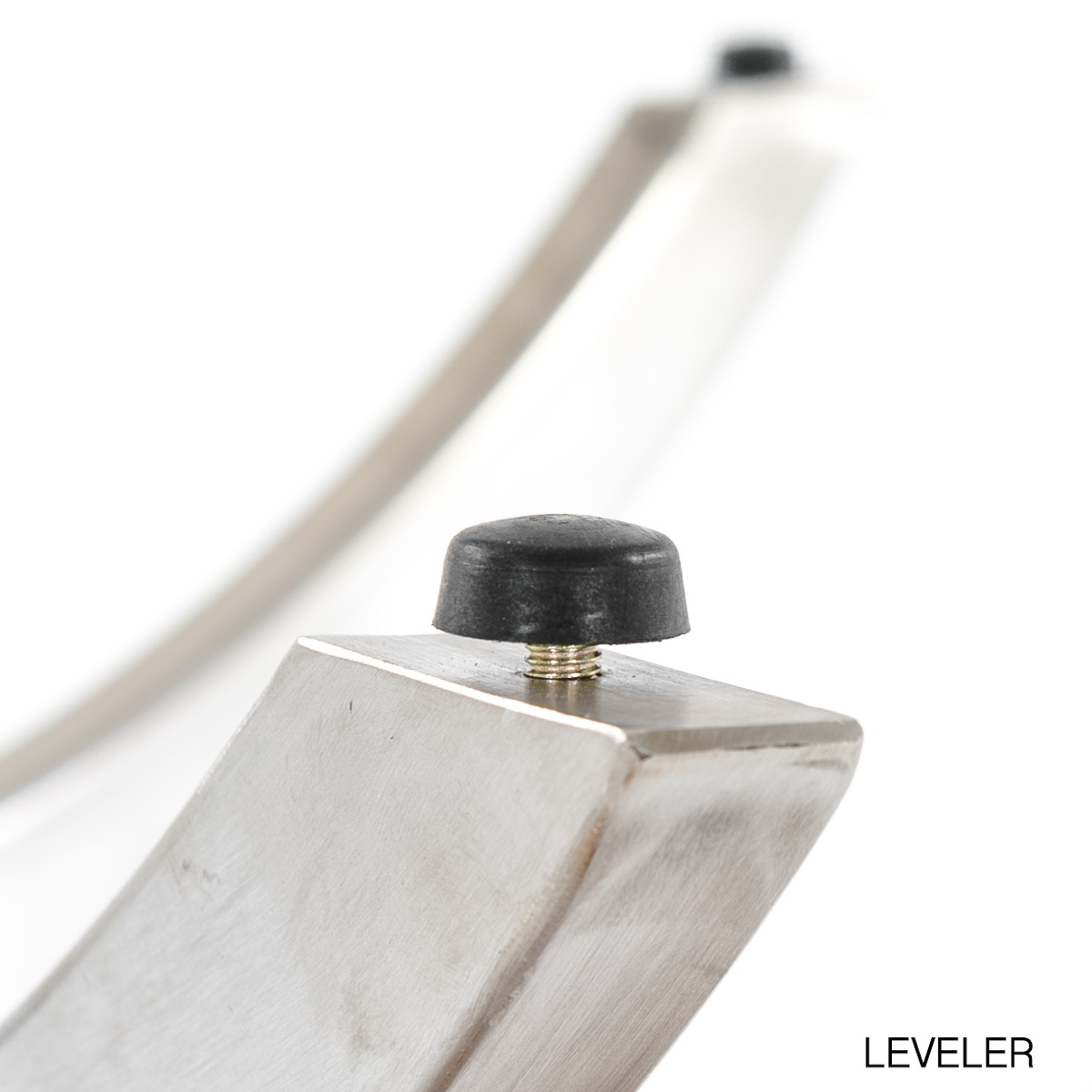 Plastic glides on the stainless steel legs prevent scratches on any surface, indoors or out.