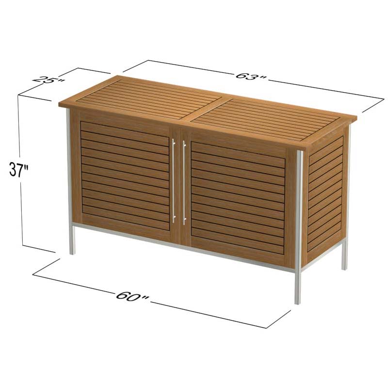 With the interplay of 304 Stainless Steel and Teak Wood, the Vogue Sideboard combines traditional craftsmanship and modern design. Constructed with a stainless steel frame, door pulls, hinges, and solid teak panels, its bold clean lines complement any style. It provides abundant space for outdoor storage needs, from tableware and cushions to pool accessories and towels, while keeping contents dry and readily available. The Vogue Sideboard easily doubles as a serving station. Part of the Vogue Collection