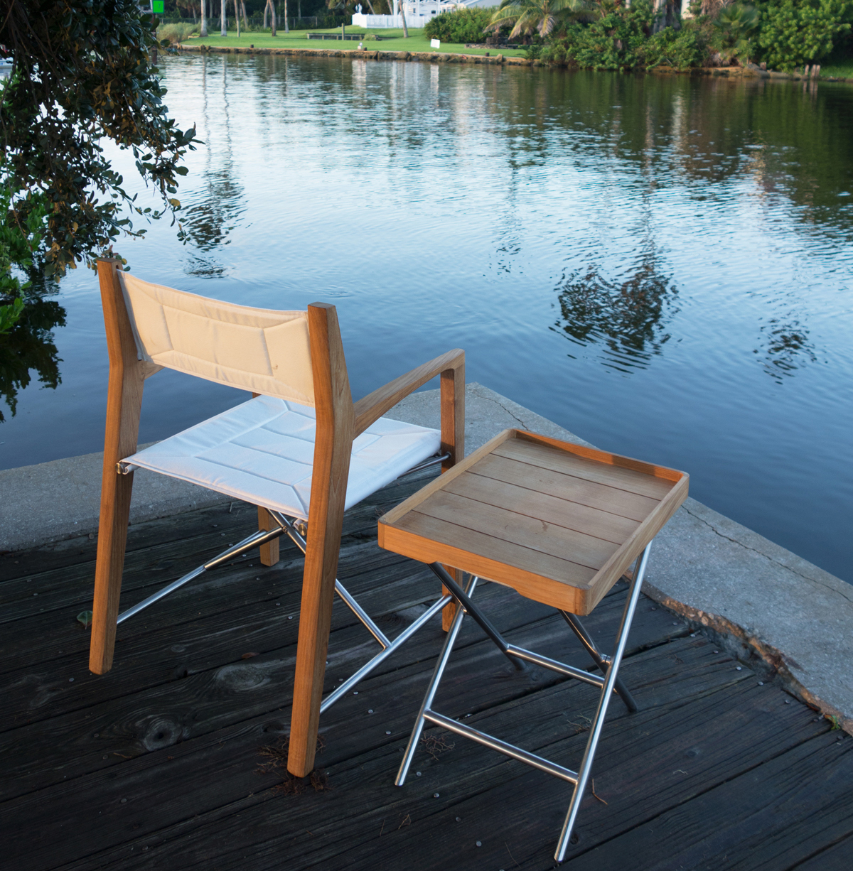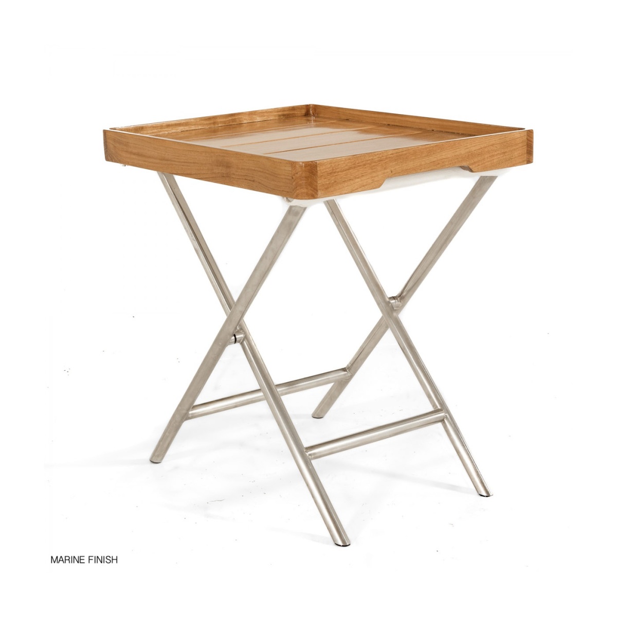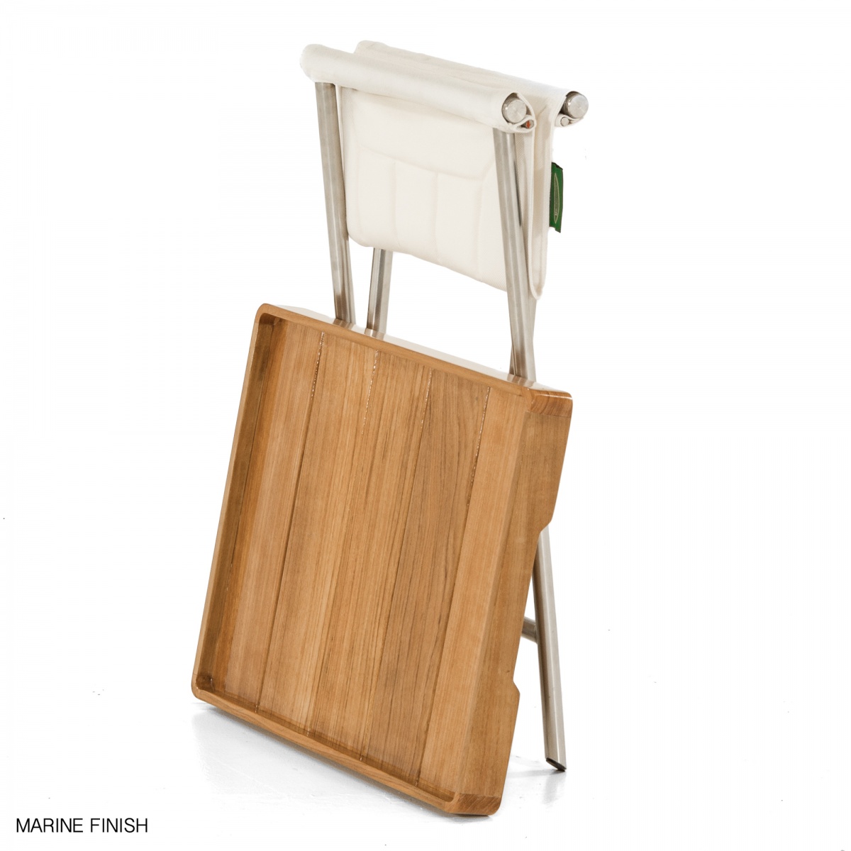 Made of 316L marine grade stainless steel and part of the Odyssey Collection, the Odyssey Folding Ottoman is a light-weight, compact, yet highly functional piece of furniture. From extra seating to a footrest, or as a side table with its companion teak tray, the simple versatility of this Ottoman makes it a practical choice. Like every piece of the Odyssey Collection, it will fit seamlessly on the deck of a yacht, the balcony of a high-rise, or the poolside of a home. Folds completely for easy storage.