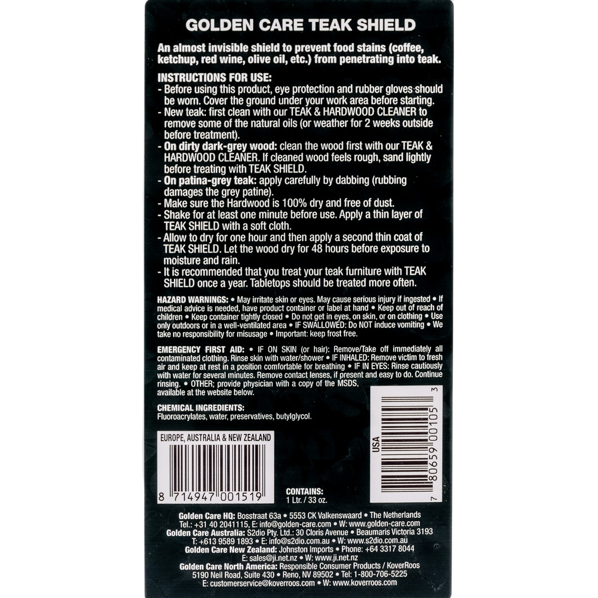 * Shake for at least 1 minute before use. Apply a thin layer of Teak Shield with a soft cloth.