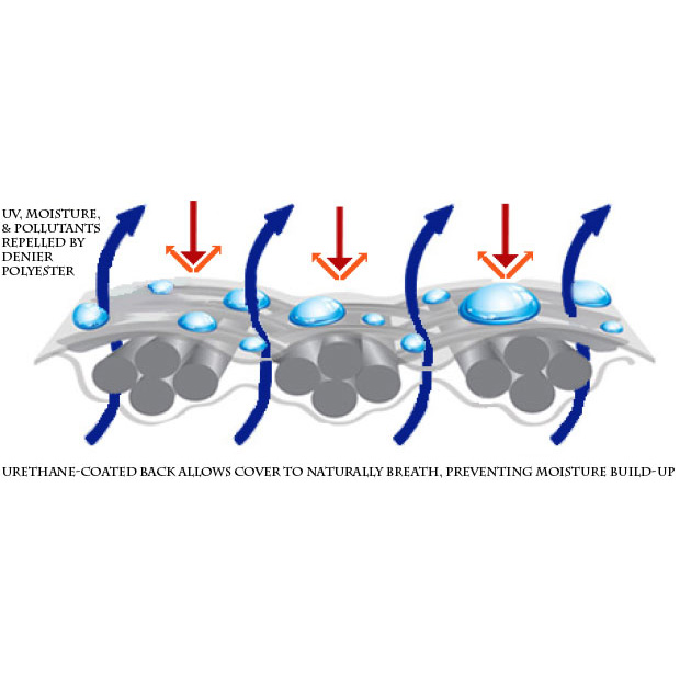 Rain, sunlight, wind and snow are no match for our protective cover fabrics. Our covers provide the ultimate UV-resistant and water resistant protection for your outdoor furniture, benches, chairs, chaises, umbrellas and more. Made from durable Sur Last fabric which reduce the headache of cleaning up dirt, pollen and other debris. Sur Last is easy to clean and light weight, making storage convenient when covers aren’t in use.