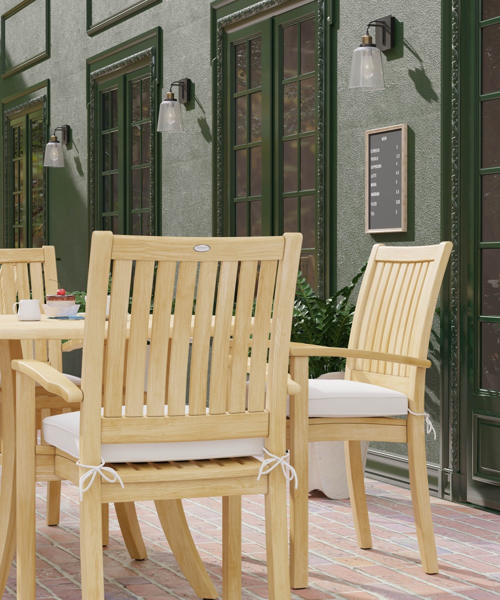 Optional cushions made with Quick Dry Foam® core and 100% solution dyed Sunbrella fabrics. Crafted with SVLK Certified Grade A Teak harvested from sustainable plantations in Indonesia. Every piece is precision manufactured to standard specifications for commercial and residential use.