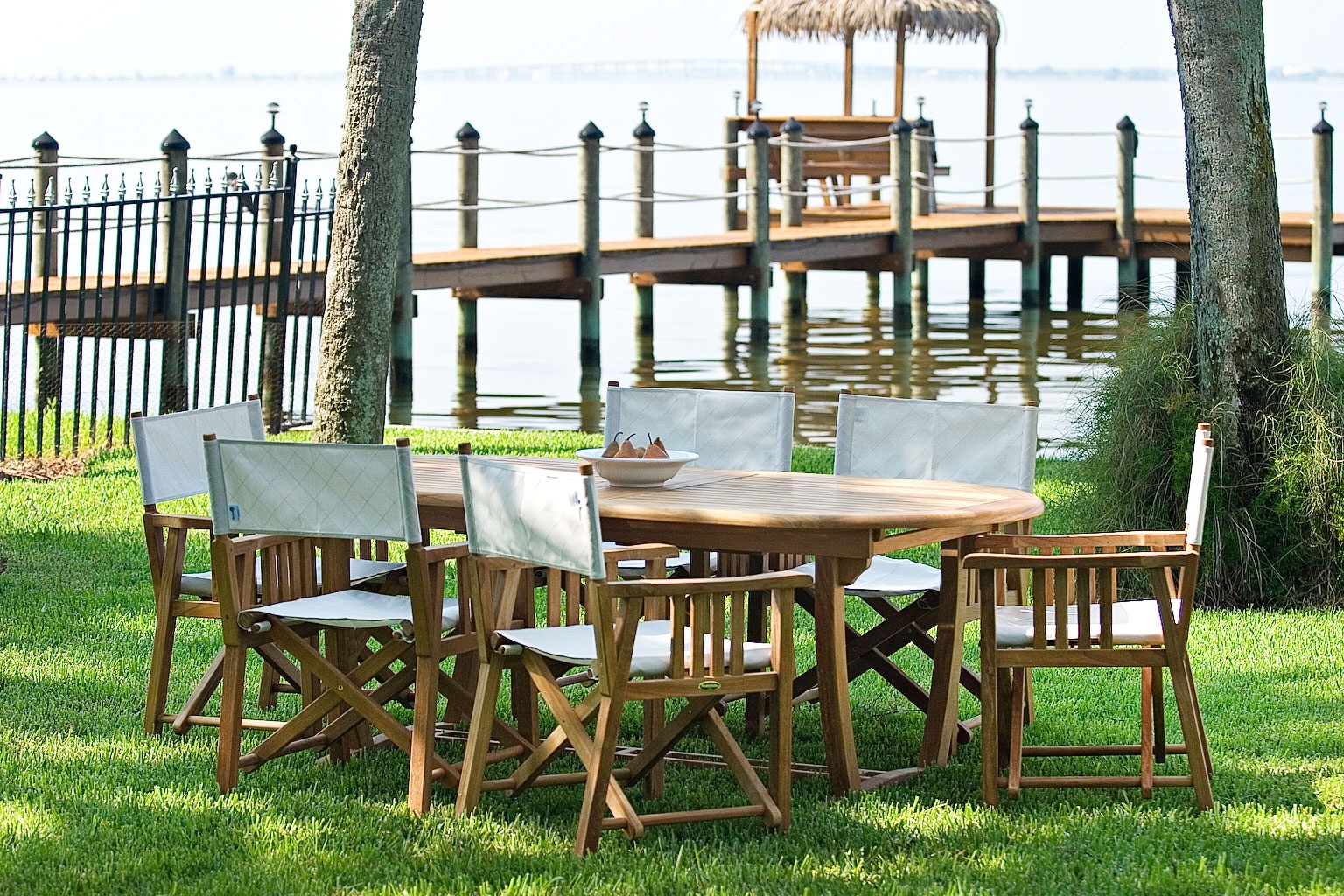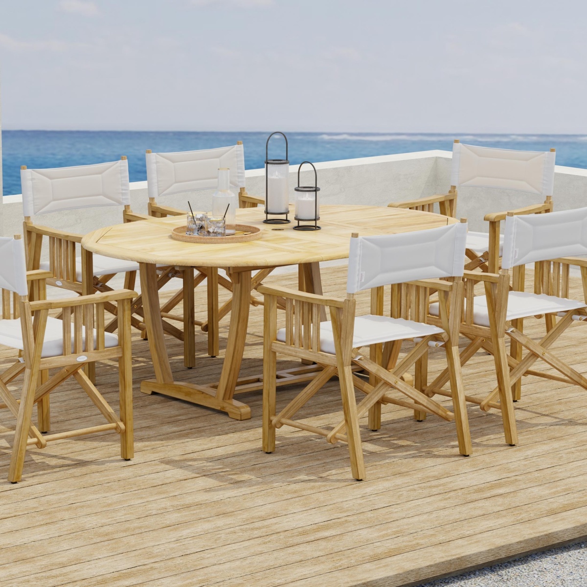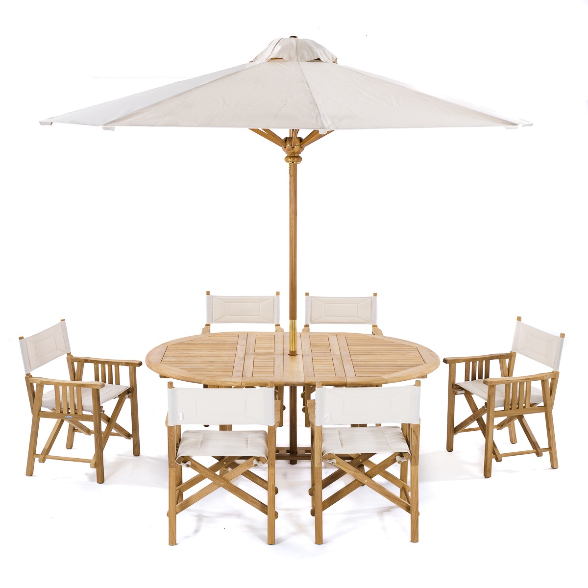 The Director Chair 7 piece Teak Outdoor Dining Set features: