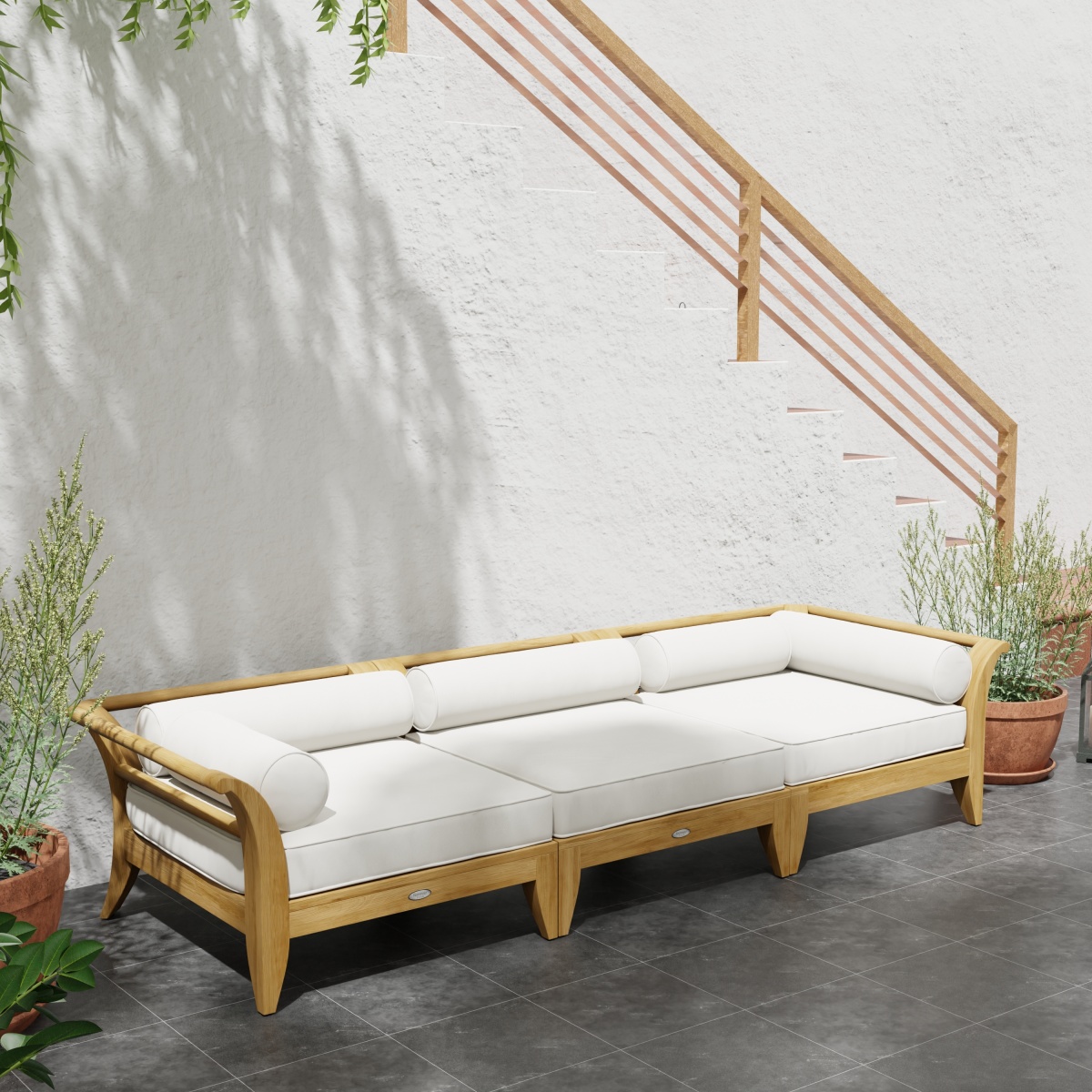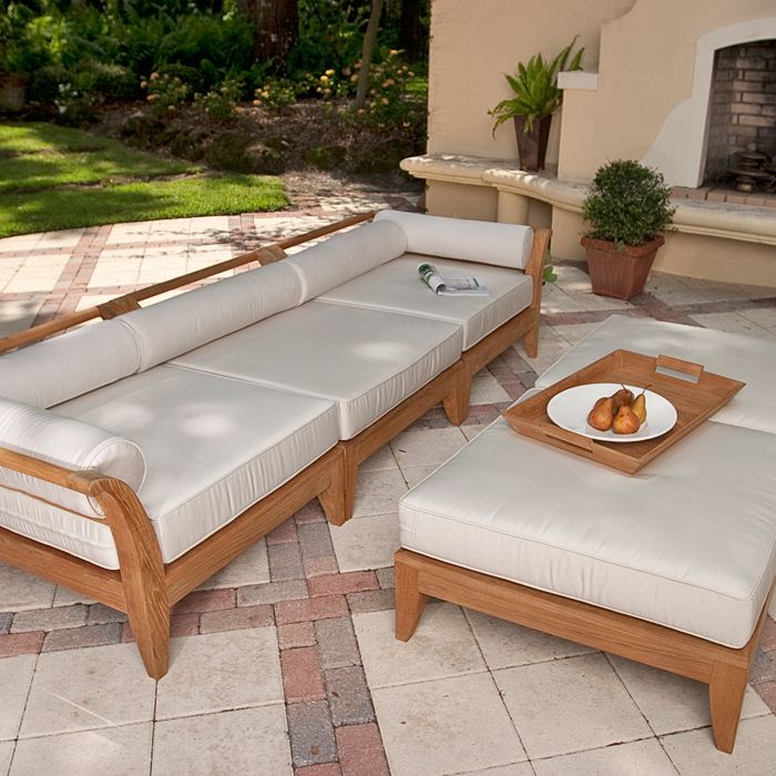 Exclusively designed for Westminster with its distinctive sweeping lines and architecturally low profile frame, the Aman Dais Collection can be arranged into many different configurations to suit any function or style. Easily position the set into an outdoor Daybed with the two Corner Sectionals, or extend it into a longer Sofa with the End Sectional. An optional ottoman/fill sectional can be used as a footrest to create a Full-fledged Sofa.