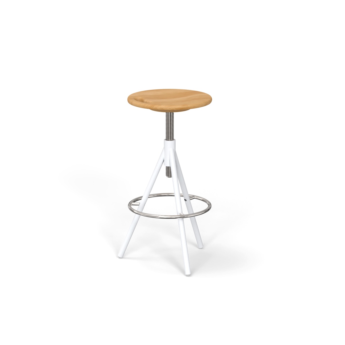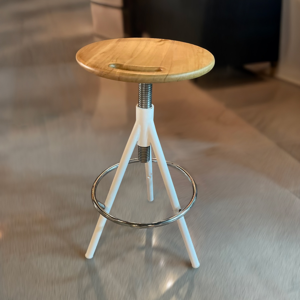 The Swivy Indoor Counter Stool Set of 4 features a finely crafted seat hand-lathed from solid teak set onto a powder-coated steel base. Made to withstand the rigors of industrial use, the stool works equally well for both residential and commercial settings. The swivel lift mechanics allow for the seat height to be adjusted to accommodate stool heights used both as a counter and a barstool. An ample “cutout” in the seat makes carrying or moving the stool an easy proposition. The Swivy stool is stylish, comfortable, and functional, and will fit seamlessly into any space.