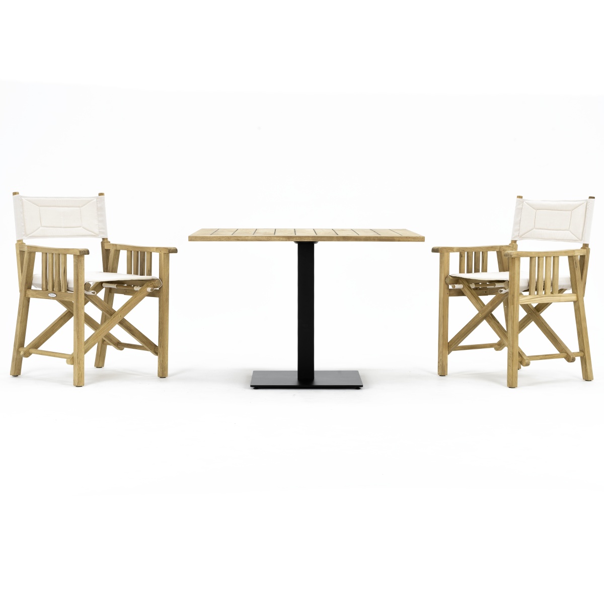 The refined luxuriousness of this teak bistro set has durability but also elegance in mind. Invite your guests to join you all season at your outdoor or indoor teak set to celebrate, entertain or just relax. The Teak Director Chair is portable, lightweight and versatile. It folds easily for storage. Excellent for those with minimal space, such as yacht and boat owners or high rise apartments. The Director Chair brings its own splash of color in its sling, made with premium Sunbrella fabric, and provides incomparable comfort.