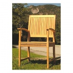 The set consist of the practical yet graceful lines Hyatt table and completed by the well proportioned (4 pcs) Bucata Armchairs. The Bucata Stacking all teak Stacking Armchair has been designed to endure the rigors of the outdoors yet has the characteristics and graceful lines that makes it beautiful enough to be used indoors. Its closely placed, vertical slats and gently arched back is designed for comfort and lumbar support making it a great chair for any space in the home, indoors or out. Each piece is crafted to a micro-smooth finish and made from eco-friendly teak wood from renewable plantations.