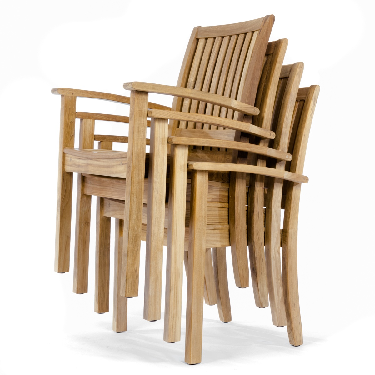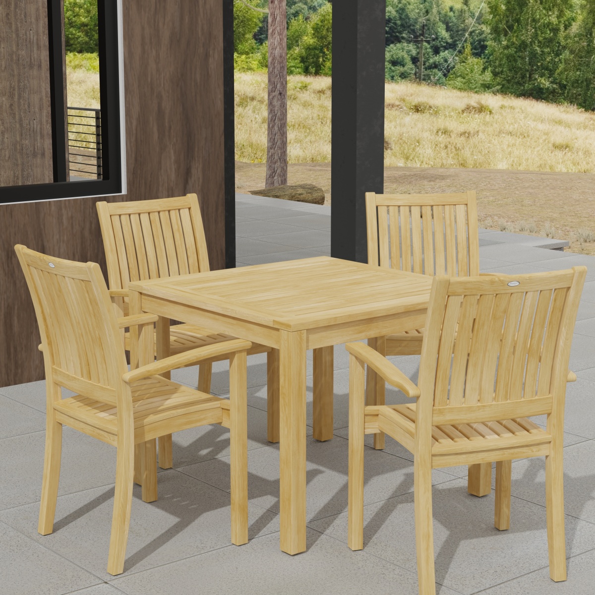 The 5 Pc Sussex Dining Set is a classic bistro style set, built with traditional craftsmanship with modern comfort in mind. The Sussex Teak Stacking Chairs are generously proportioned with wide armrests to accommodate the Bistro Teak Table and any body type while their gently arched backs and seats allow comfort for extended amounts of time.