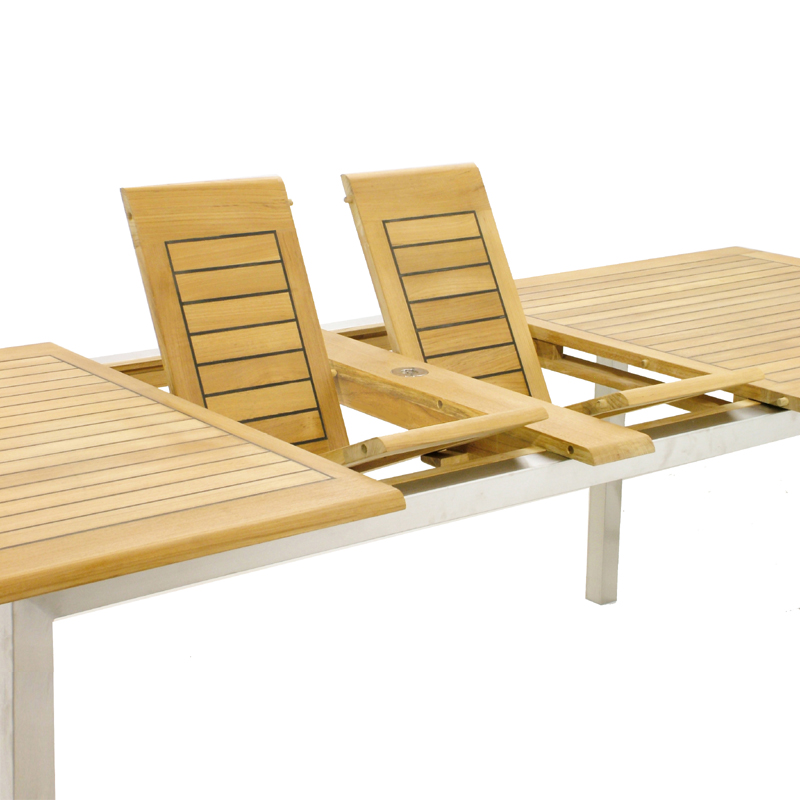 The refined elegance of this Teak outdoor dining set has class and functionality in mind. Invite your guests to join you all season at your indoor-outdoor teak furniture set to celebrate, entertain or just relax. Whether you have chosen this indoor/outdoor teak set for the comfort of the generous teak wood Extension table or the convenience of the 8 Valencia Dining Chairs, Westminster created this teak outdoor set with your entertainment and dining in mind.