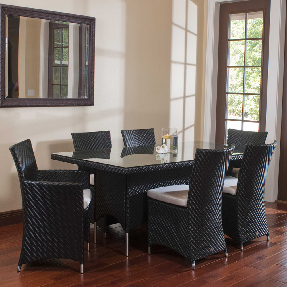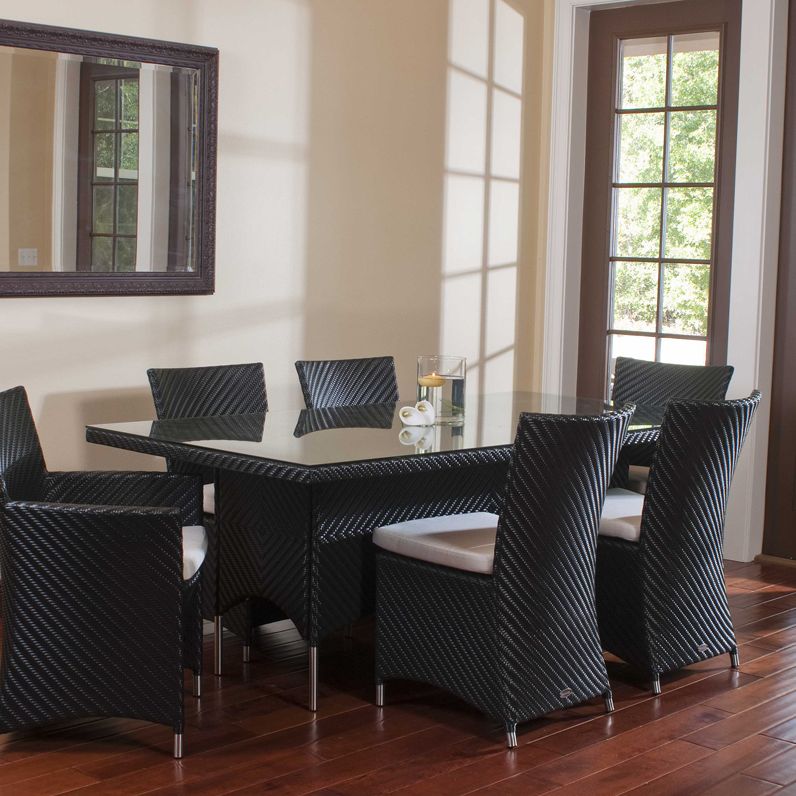 The Valencia 7 piece Dining Set combines modern style with functionality. Lightweight and sturdy enough to withstand the rigors of everyday use, each piece is made of durable synthetic wicker on a powder coated high performance aluminum frame. The fibers are engineered to not only replicate the look and feel of wicker or rattan, but to endure through weather, UV exposure, mold, and mildew.