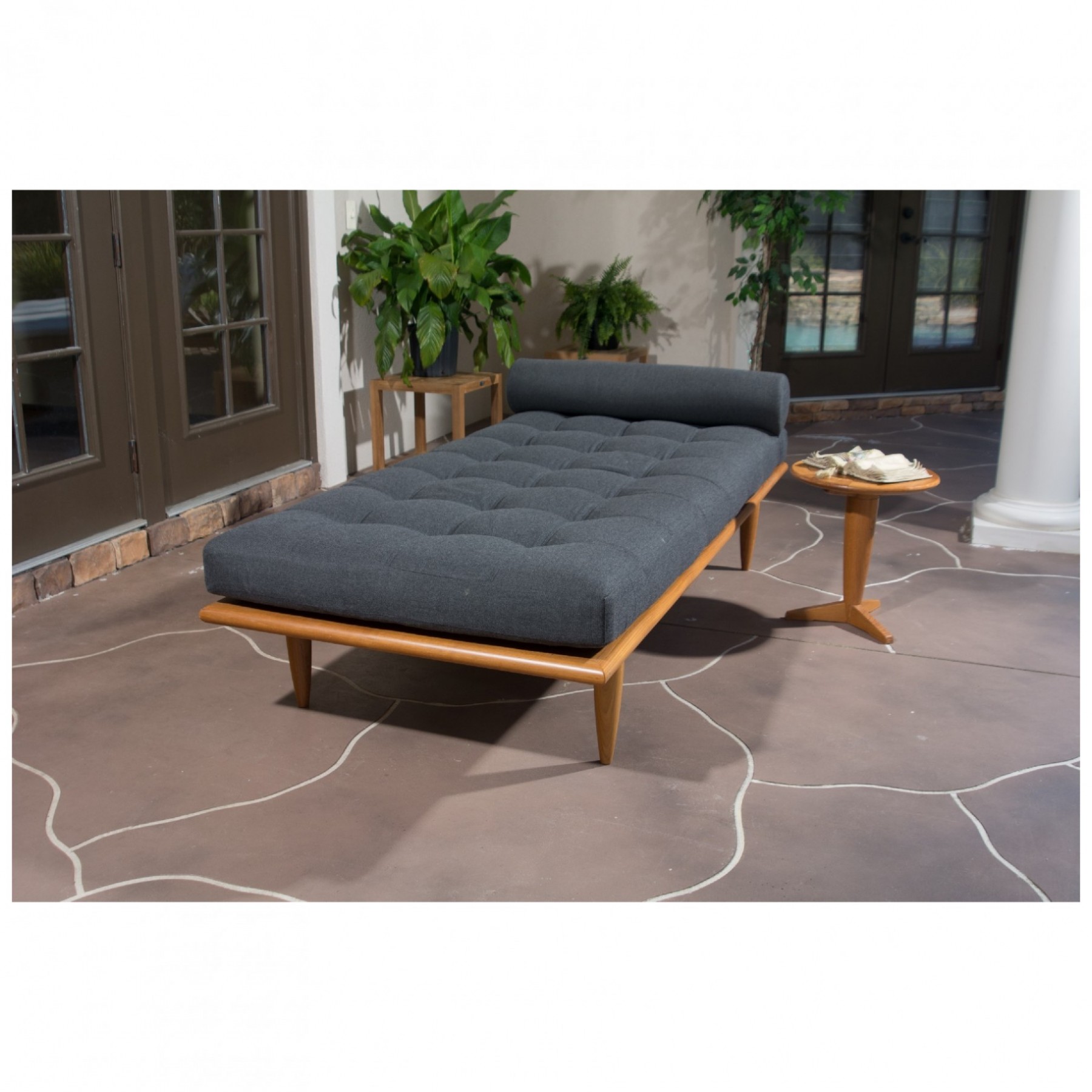 The Saloma Teak daybed is complemented by a side table. With its understated elegance and timeless form, the Saloma daybed Set is destined to become an heirloom piece.