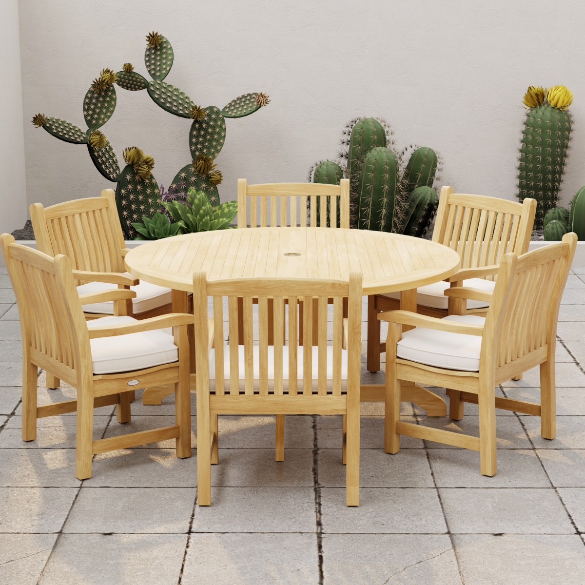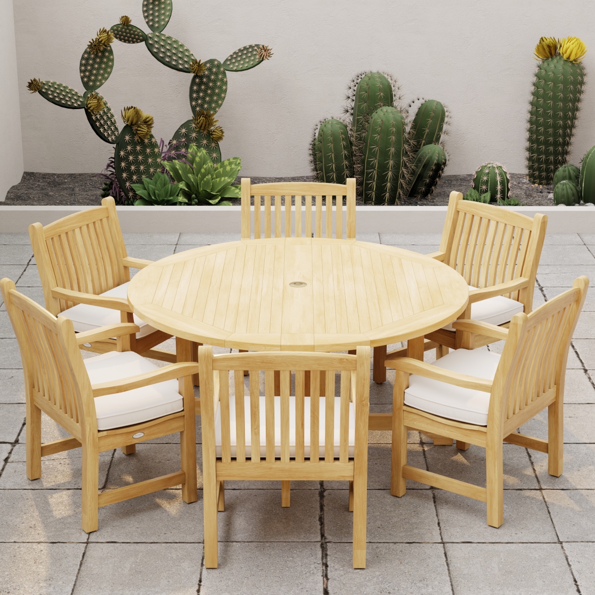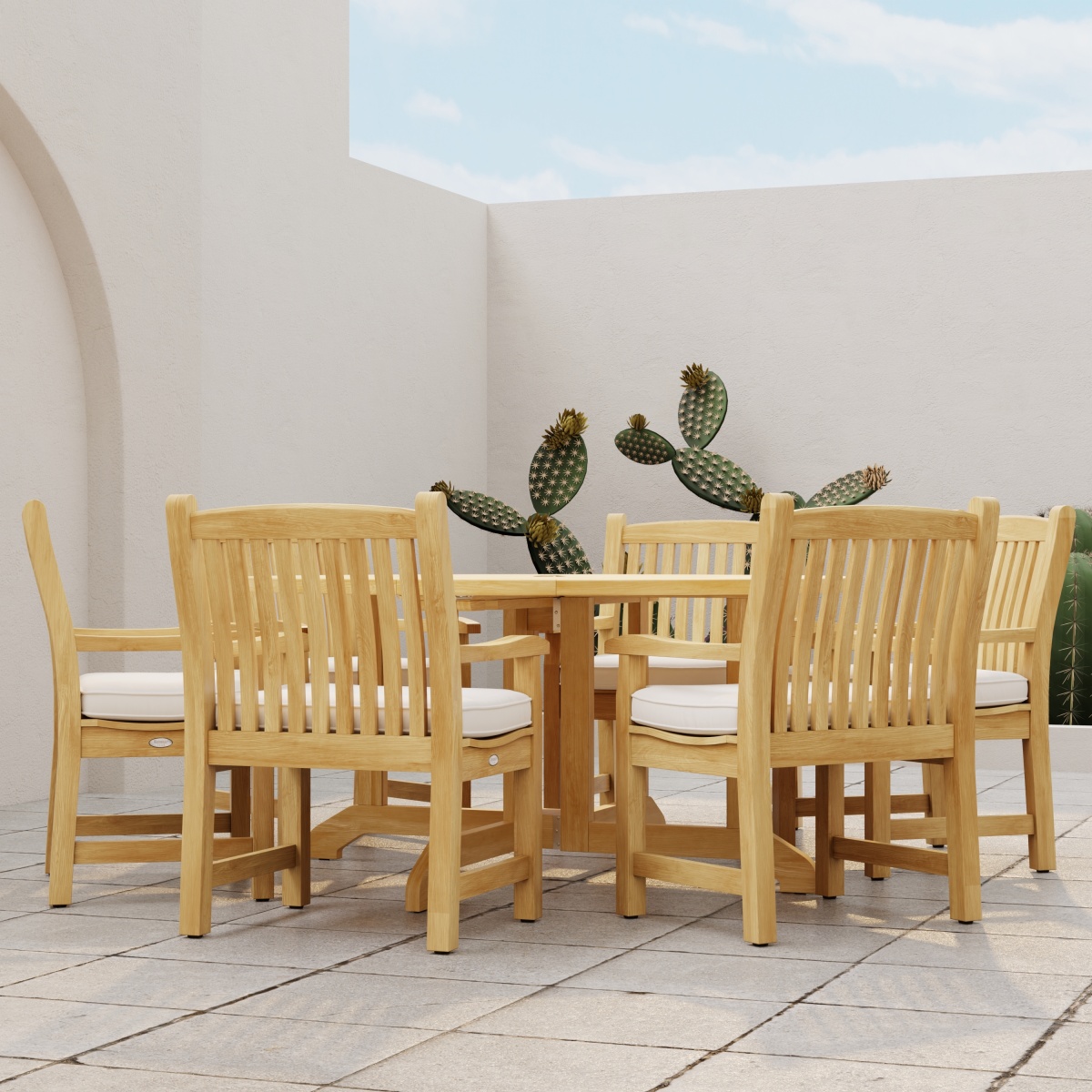 5 ft Barbuda Table: Medium Levelers Veranda Teak Armchair: Glides |