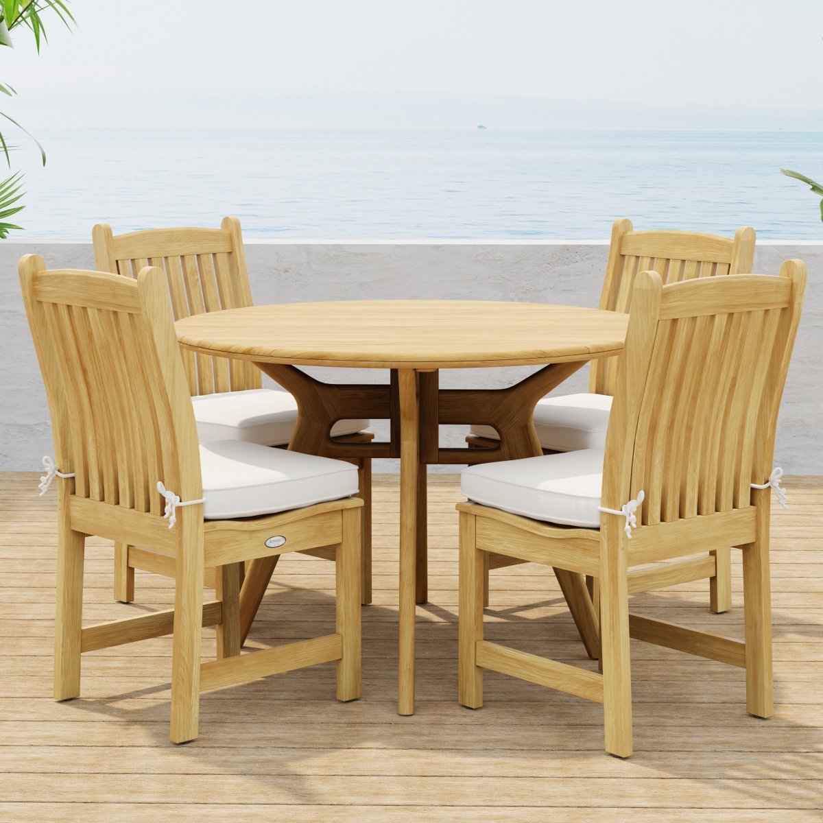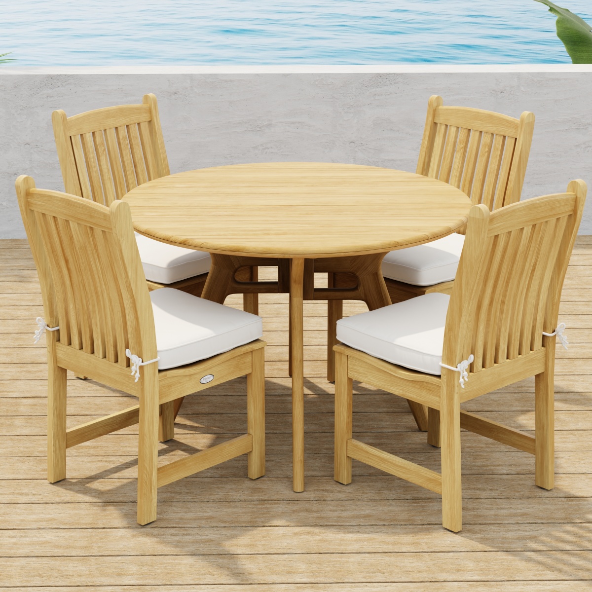 42 inch Surf Foldable Table: Glides Veranda Teak Dining Chair: Glides |