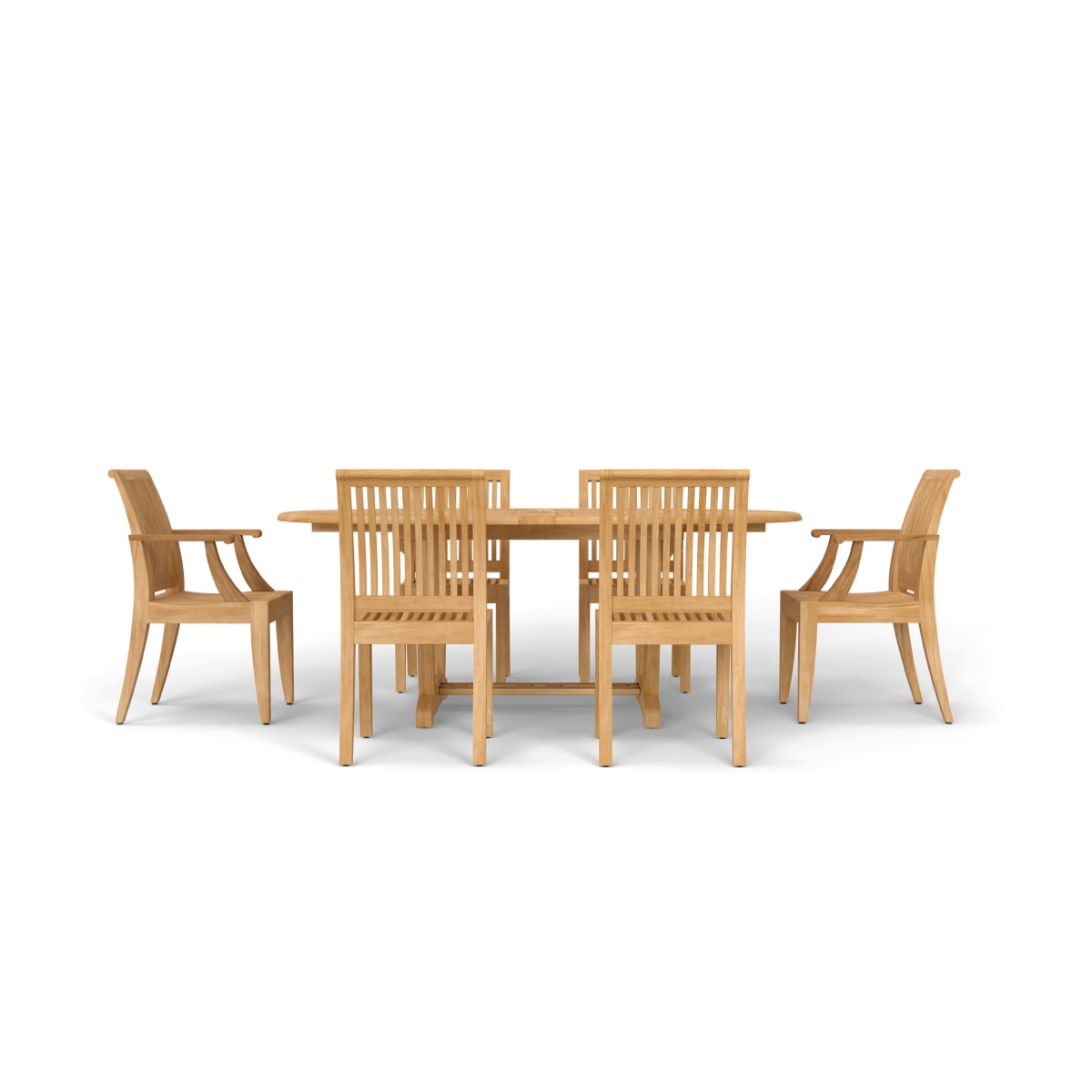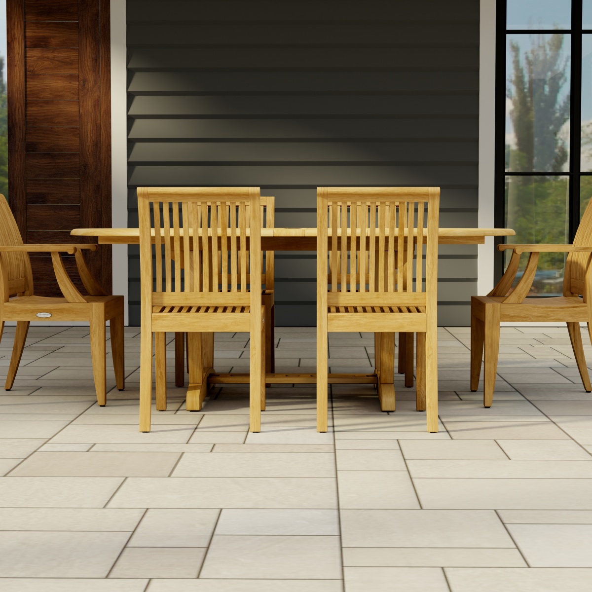 Martinique Teak Table: Large Levelers Laguna Teak Side Chair: Glides Laguna Teak Dining Armchair: Glides |