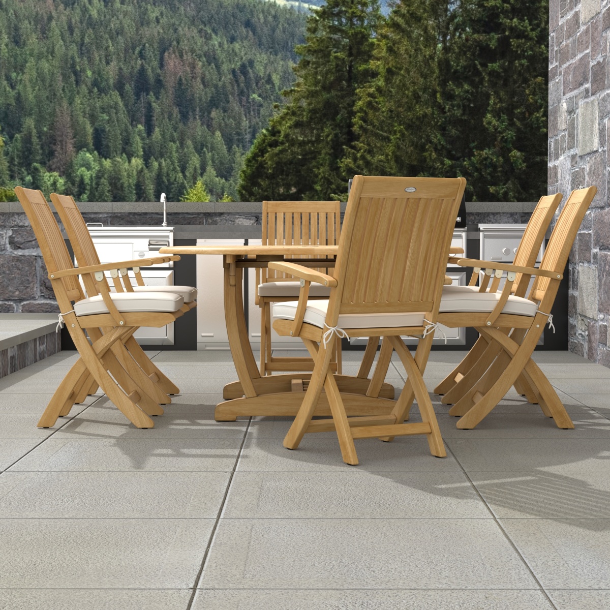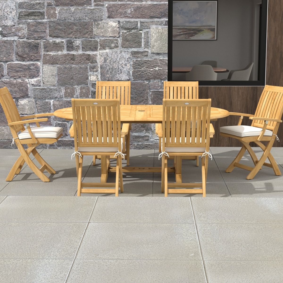 The Barbuda Folding Armchair 7 piece Teak Outdoor Dining Set features: