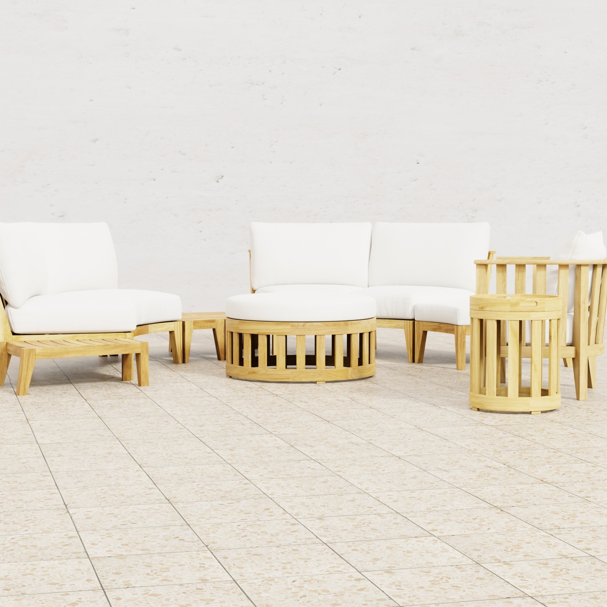 Cushions made with Quick Dry Foam® core and 100% solution dyed Sunbrella fabrics. Crafted with SVLK Certified Grade A Teak harvested from sustainable plantations in Indonesia. Every piece is precision manufactured to standard specifications for commercial and residential use. Optional Teak Finishes available.