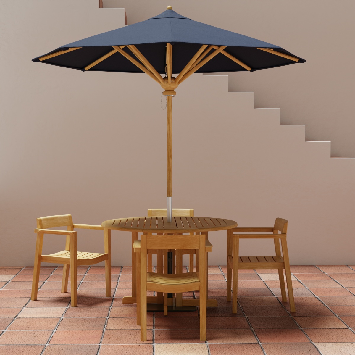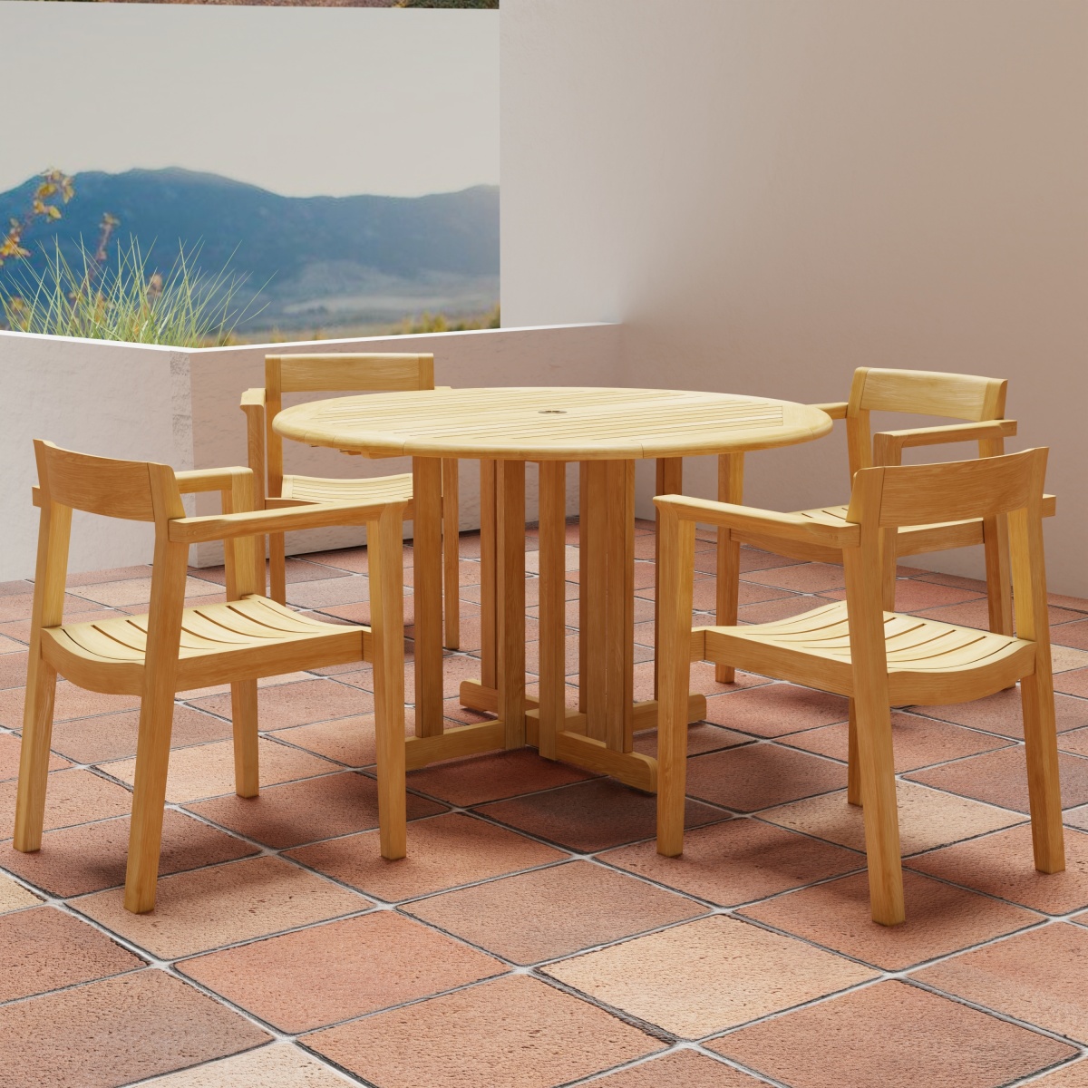 The Barbuda Horizons 5 pc Set is an exceptionally sturdy all-folding set. The Barbuda Round Table folds for easy storage when not in use. The welcoming curves of the Horizon Stacking Dining Chairs provide lasting comfort even without cushions. First impressions hardly reveal that the Horizon Dining Chairs stack for storage. Though lightweight, it is visually robust yet structurally strong given its solid teak stature. Built with traditional craftsmanship, this set will endure the test of time and the outdoors.
