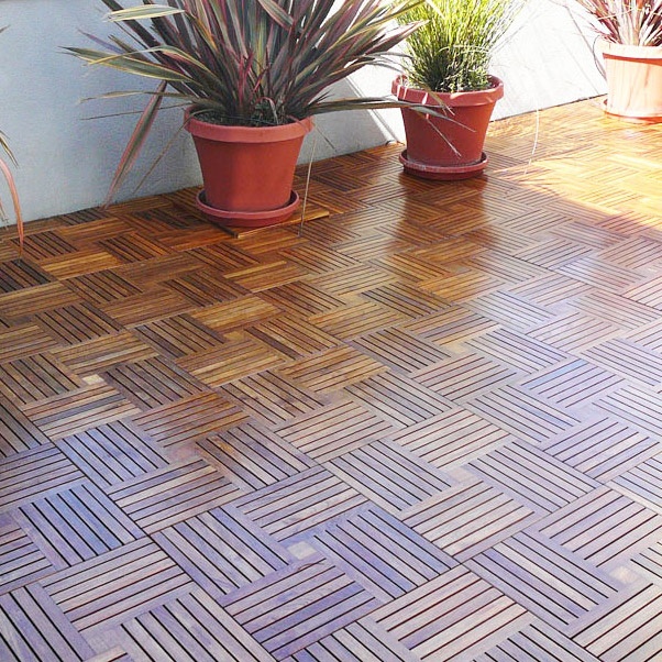 Our Westminster Teak Wooden Tiles are perfect indoors or outdoors. They can be used as standalone deck material, for spa shower floors, for covering an existing deck, for door mats, for walking steps, for counter tiles and for many, many new applications that our customers invent from time to time. Our Teak Floor Tiles are made of 100% Plantation Grown Teak and will last a lifetime even untreated, outdoors and weathered!
