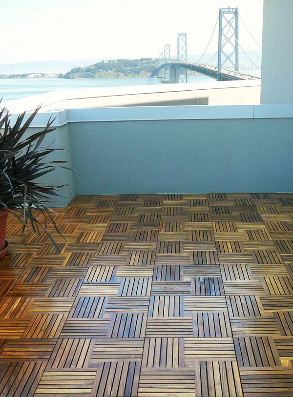 Our Teak Wooden Tiles are perfect indoors or outdoors. They can be used as standalone deck material, for spa shower floors, for covering an existing deck, for door mats, for walking steps, for counter tiles and for many, many new applications that our customers invent from time to time. Our Teak Floor Tiles are made of 100% Plantation Grown Teak and will last a lifetime even untreated, outdoors and weathered!