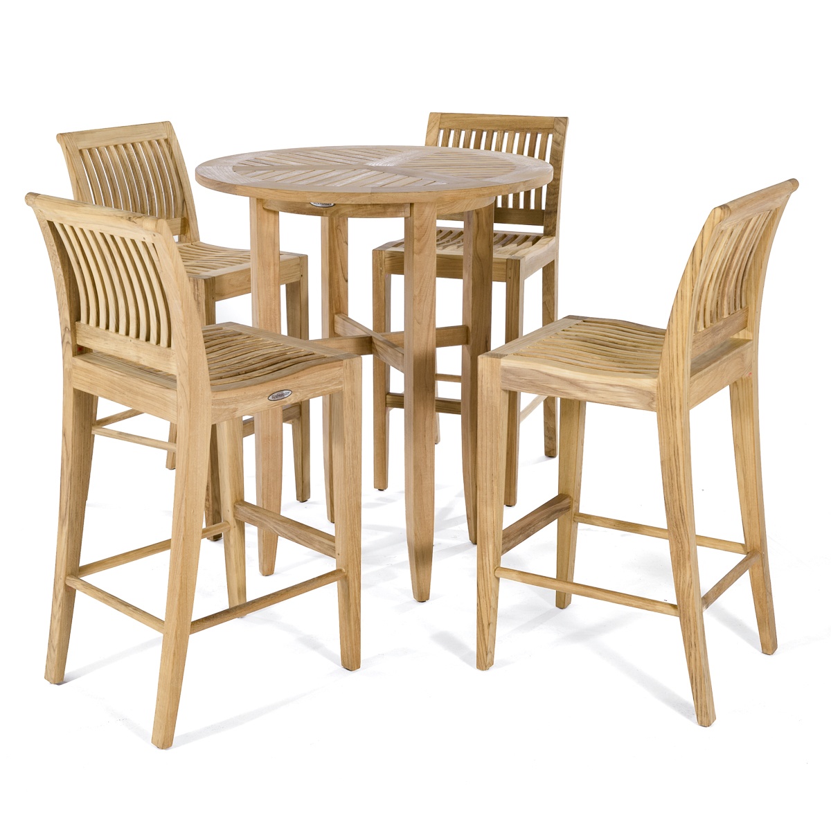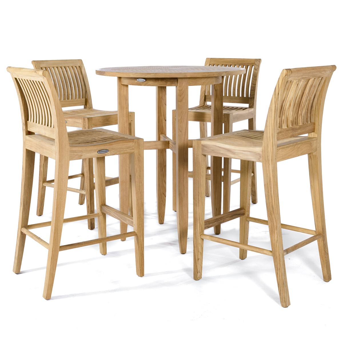 Laguna Side Teak Barstool: Glides Laguna Round Teak Bar Table: Glides |