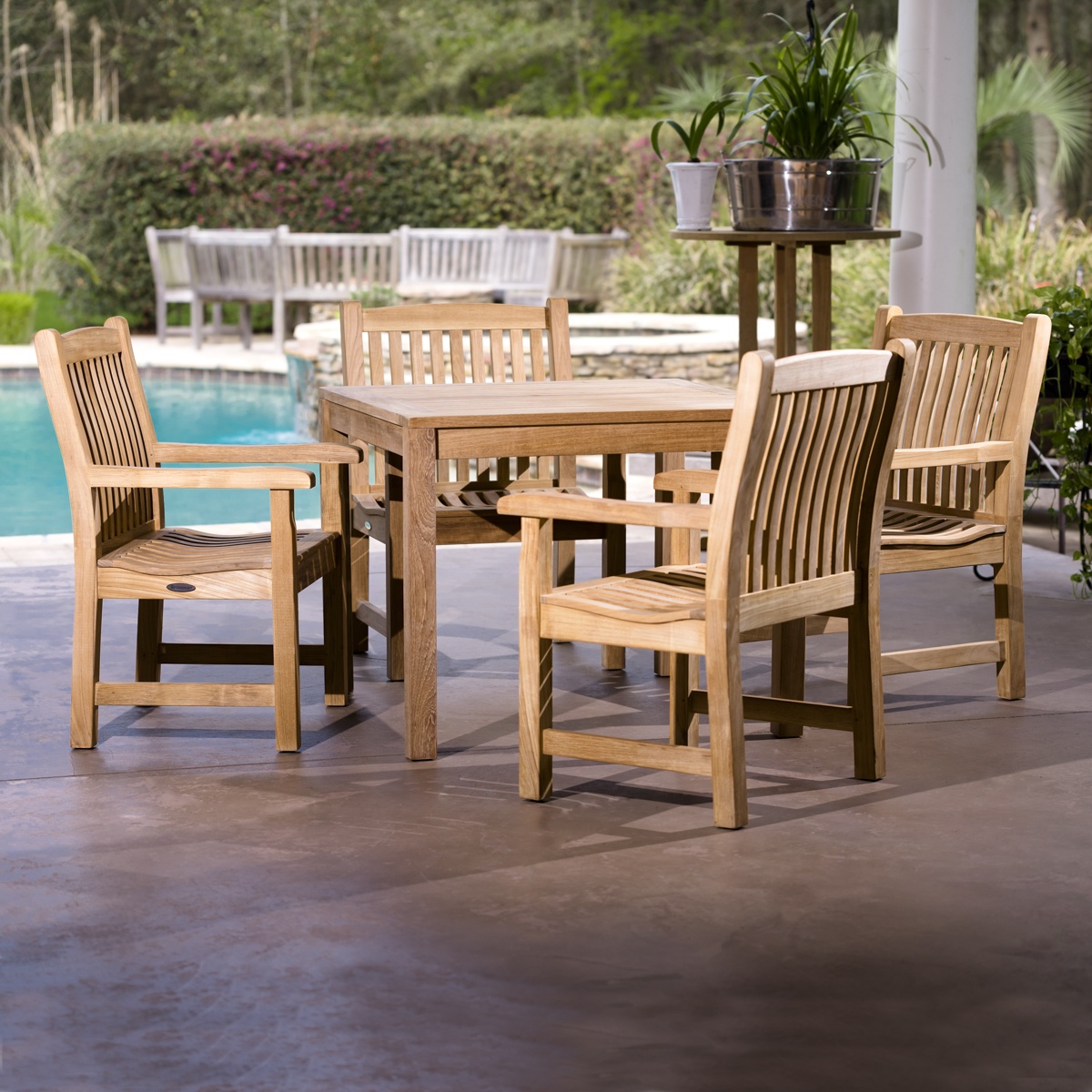 Bistro Teak Dining Table: Large Levelers Veranda Teak Armchair: Glides |