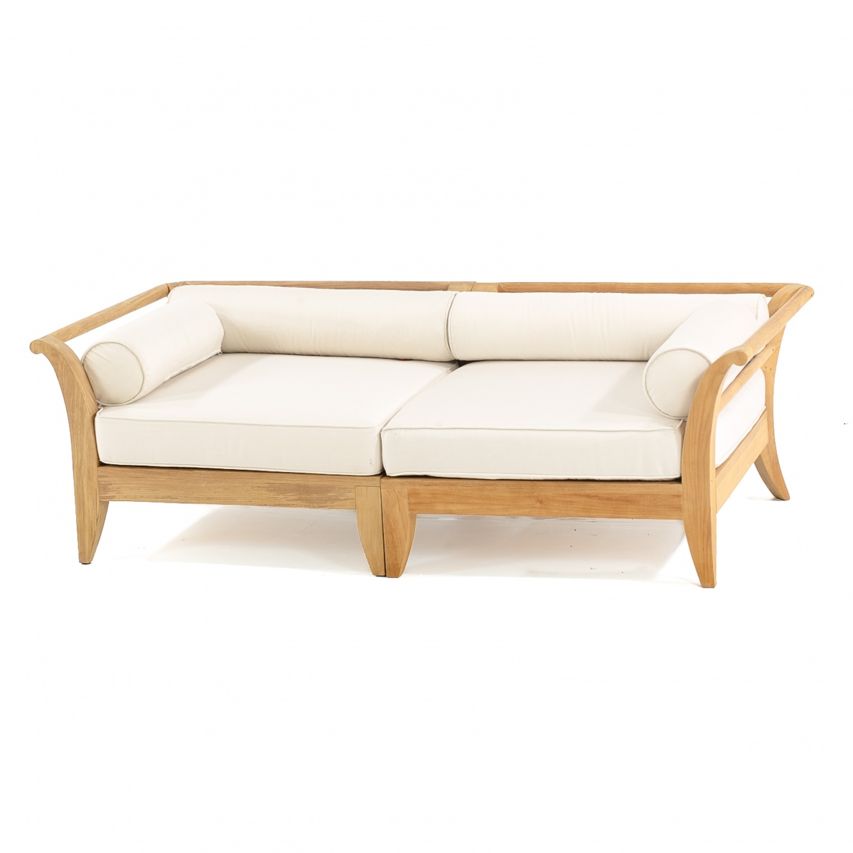 | Overall size | 77.5" L x 38.5" W 10.5" From ground to top of teak seat 15.5" From ground to top of cushion |