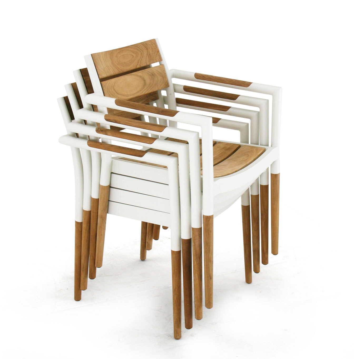 Bloom Armchair: Glides 6 ft Pyramid Teak Table: Glides |