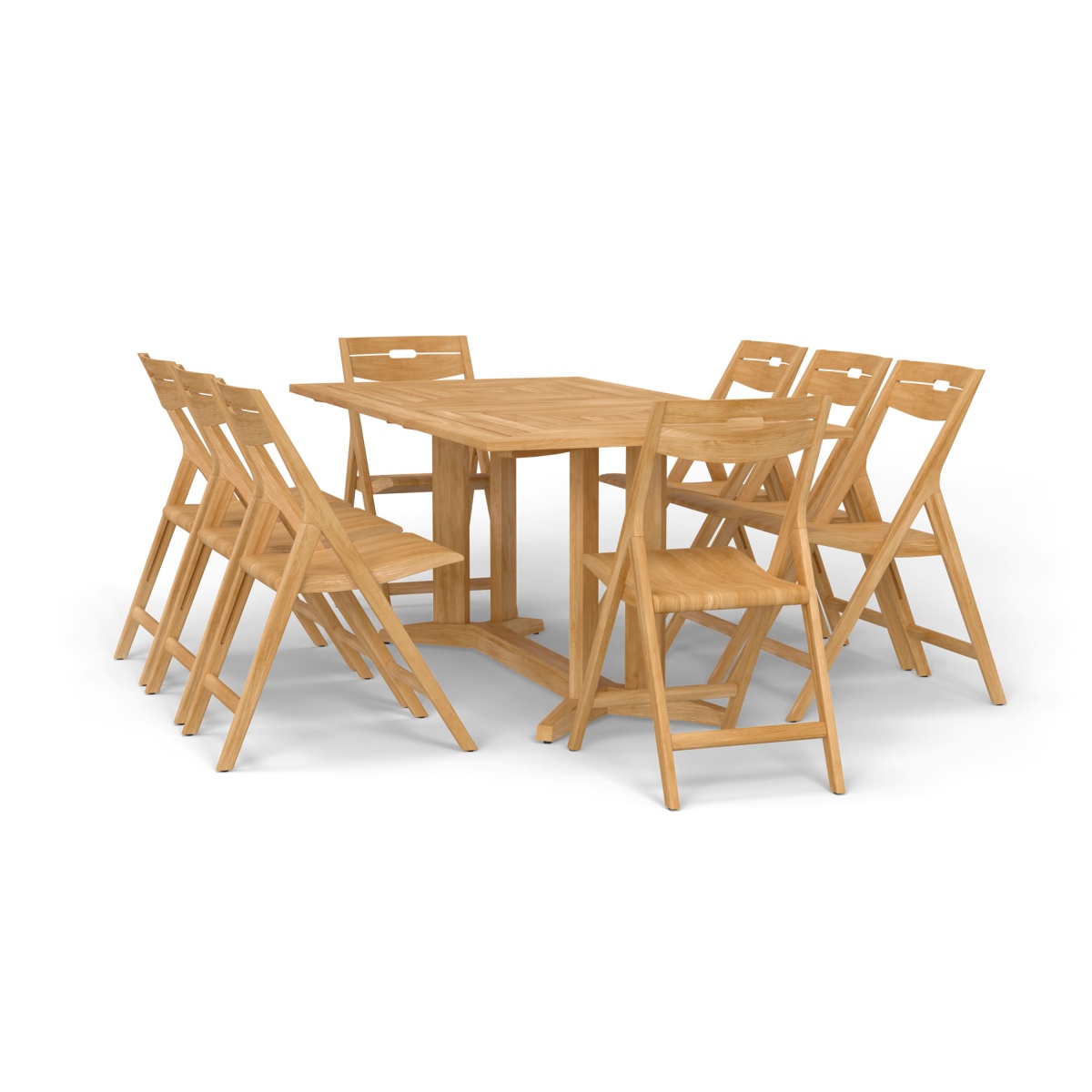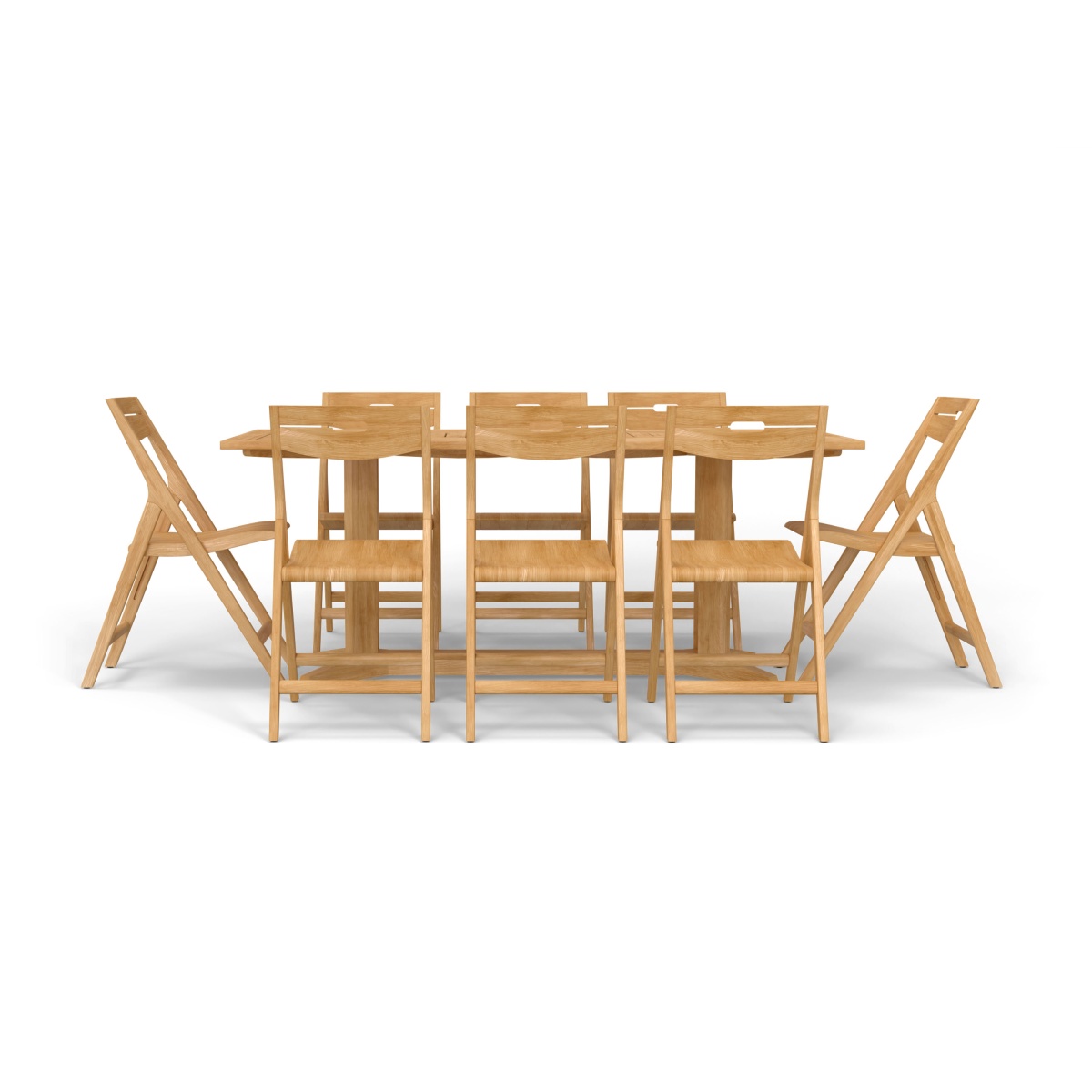 The geometric beauty of the Pyramid Rectangular Table and the graceful stance of the Surf Folding Chairs create a masterfully crafted combination. The Surf Chairs fold completely for easy storage or quick set up for additional or unexpected seating needs. The Pyramid Collection is designed for versatility, as larger sets can be arranged with the addition of another Pyramid Square or Rectangular table.