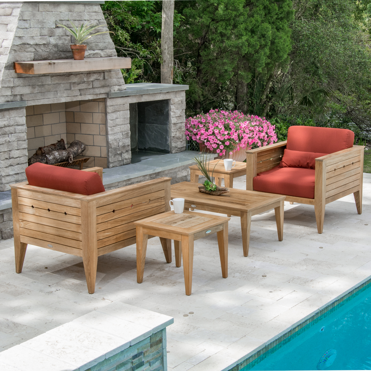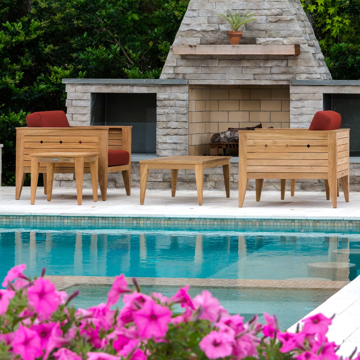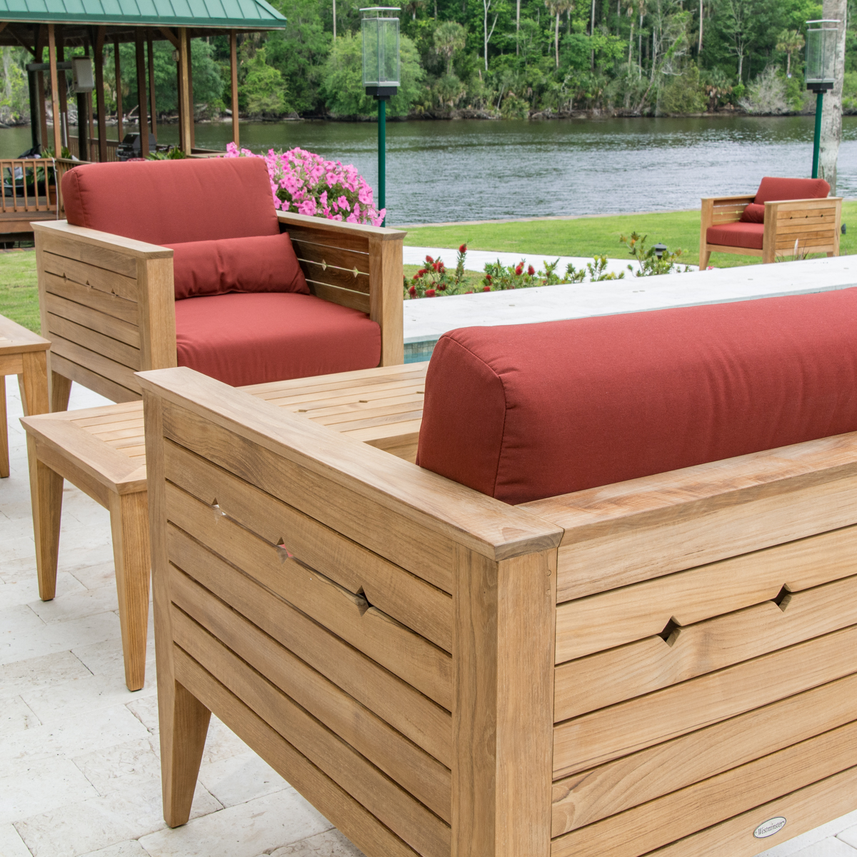 | Overall size | Armchair - 35.5" L x 32.5" W x 27" H Ground to Teak Seat 12" Ground to Seat Cushion Top 17" Sidetable - 20" L x 20" W x 18" H Coffee Table - 44" L x 24" W x 15.50" H |