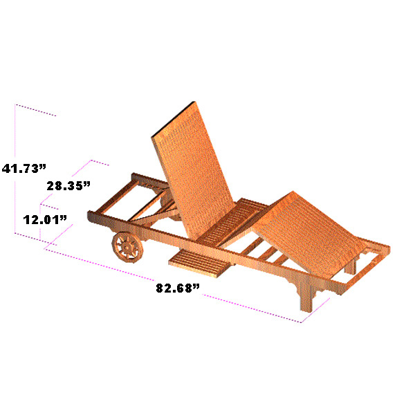 | Overall size | 83" L x 28.35" W x 12.25" H Seat Width 23.25" Side Rails - 1.25" W x 3" L Inclining Angles - 120, 135, 150, and 180 degrees Wheels - 10" Diameter All hardware made with 316L Stainless Steel. |