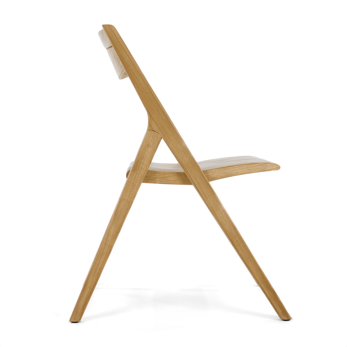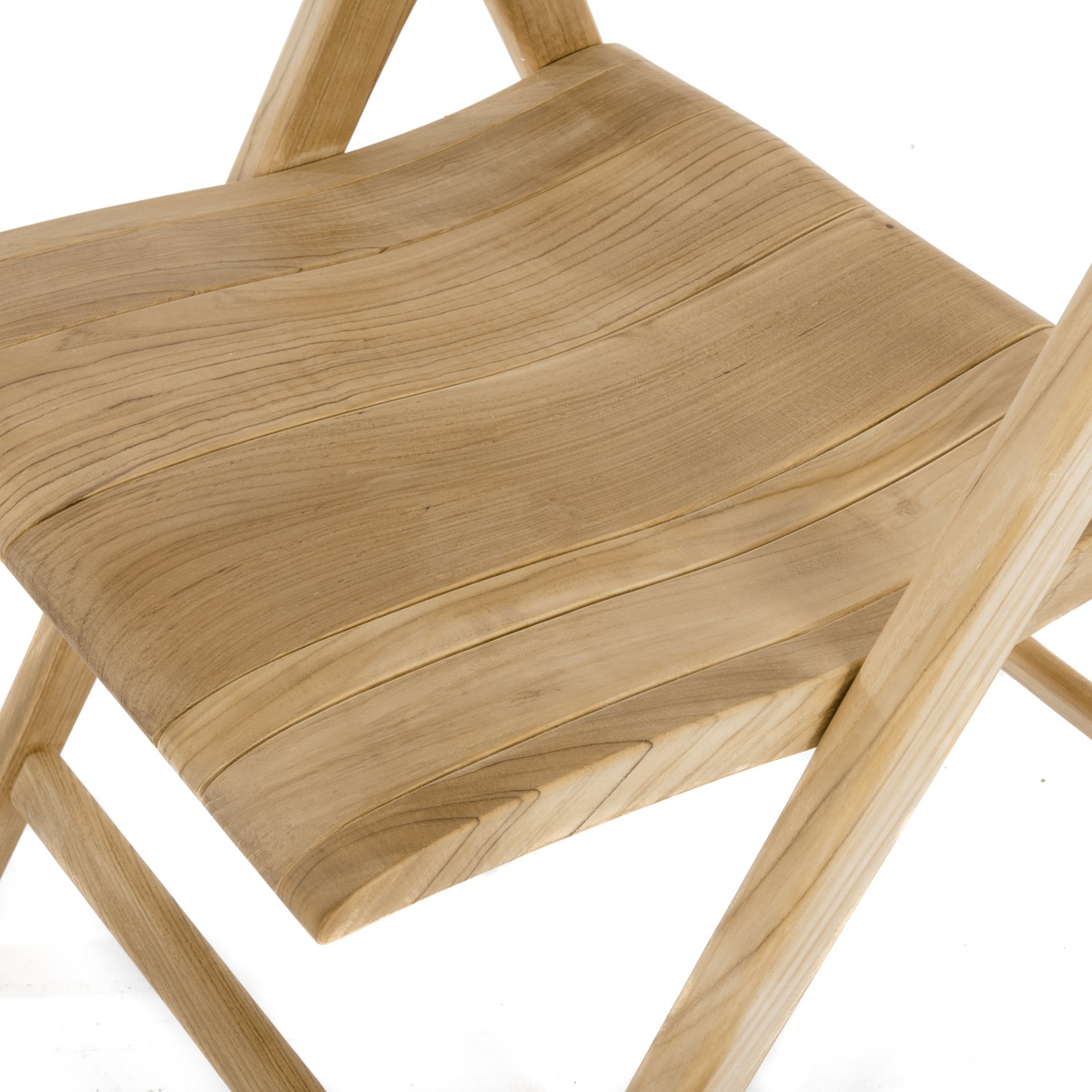 The traditional craftsmanship of the 36 inch bistro table complemented by the graceful stance of the Surf Chairs, the Surf Bistro Folding Chair Set epitomizes convenient and contemporary dining. The Surf chairs are generously scaled and their gentle curves offer lasting comfort even without cushions. First impressions hardly reveal that the chair folds while its solid stature will endure the test of time and the outdoors.