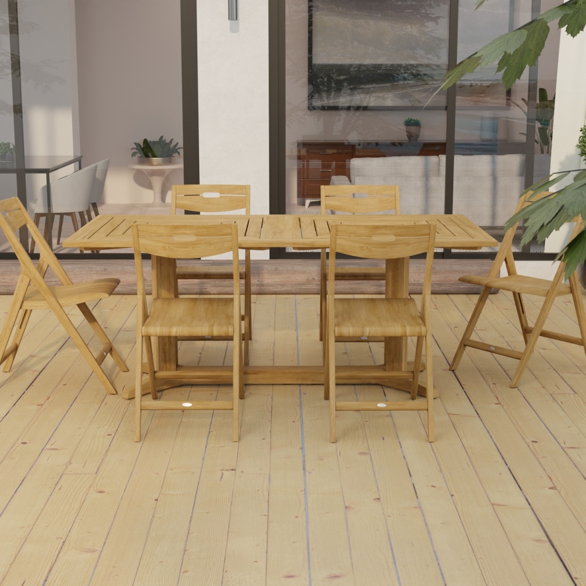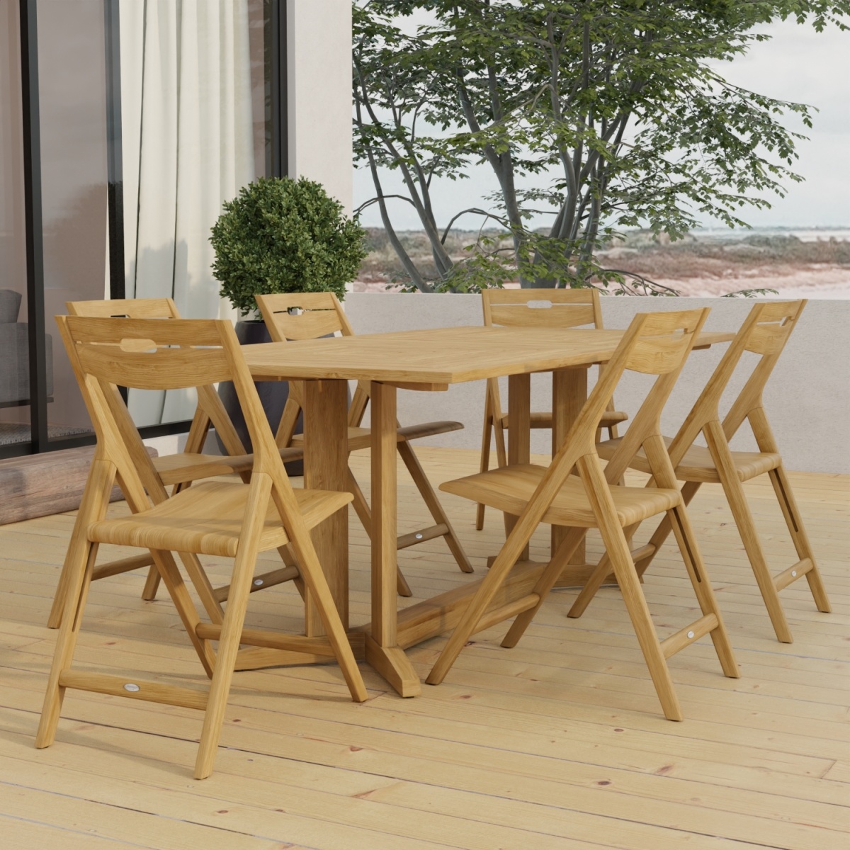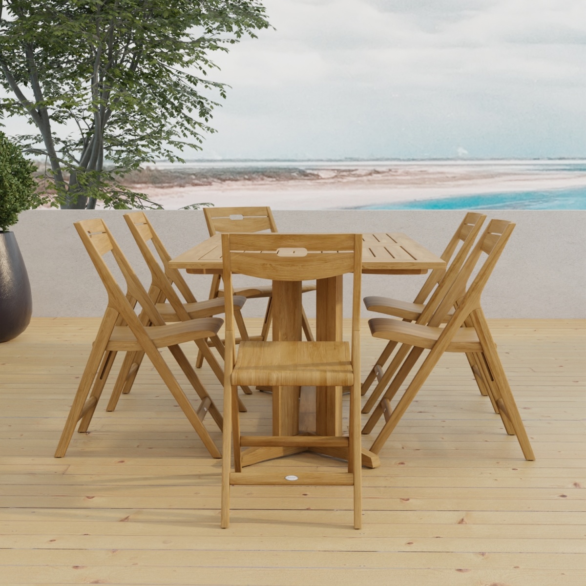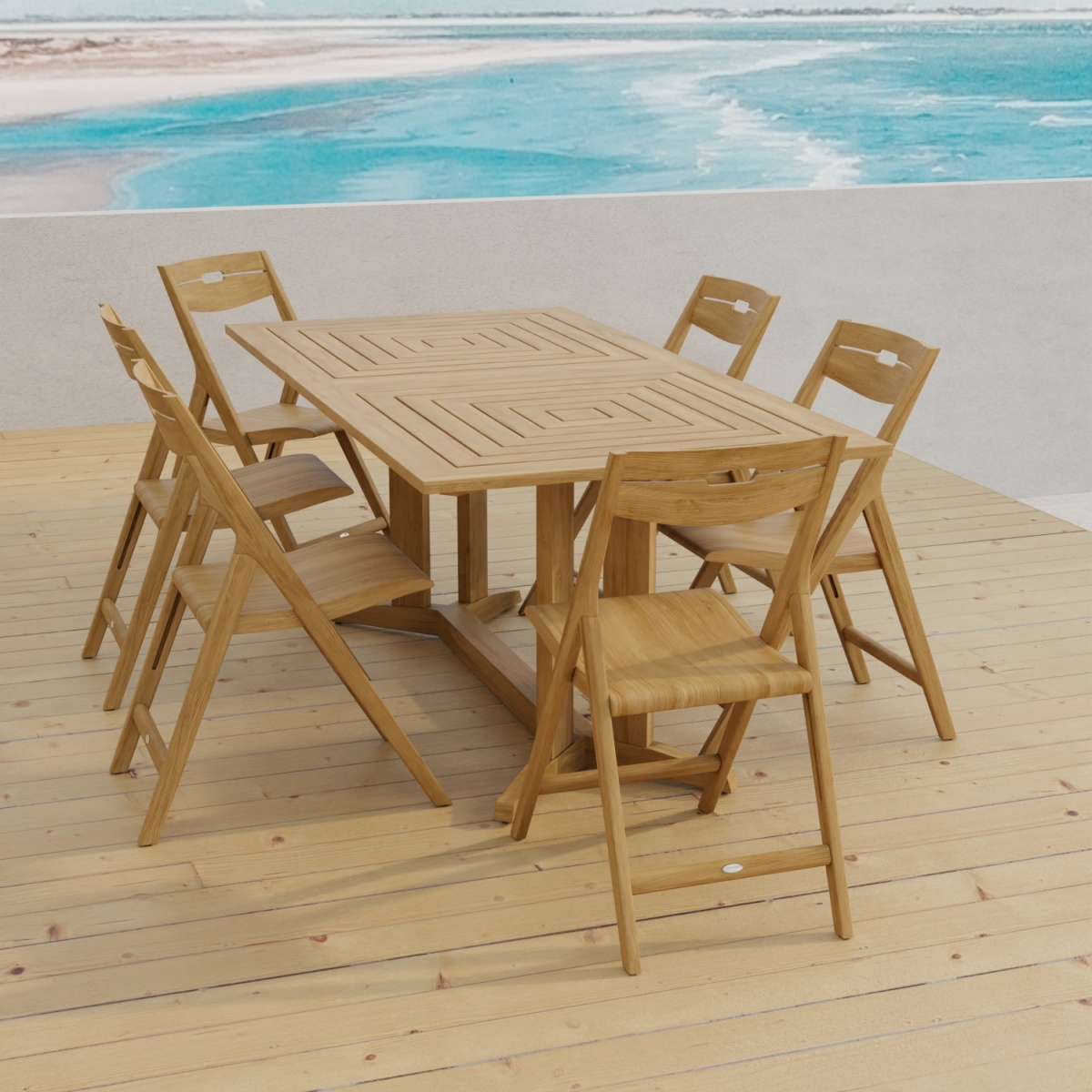 The Pyramid Surf Teak Dining Set for 6 features: