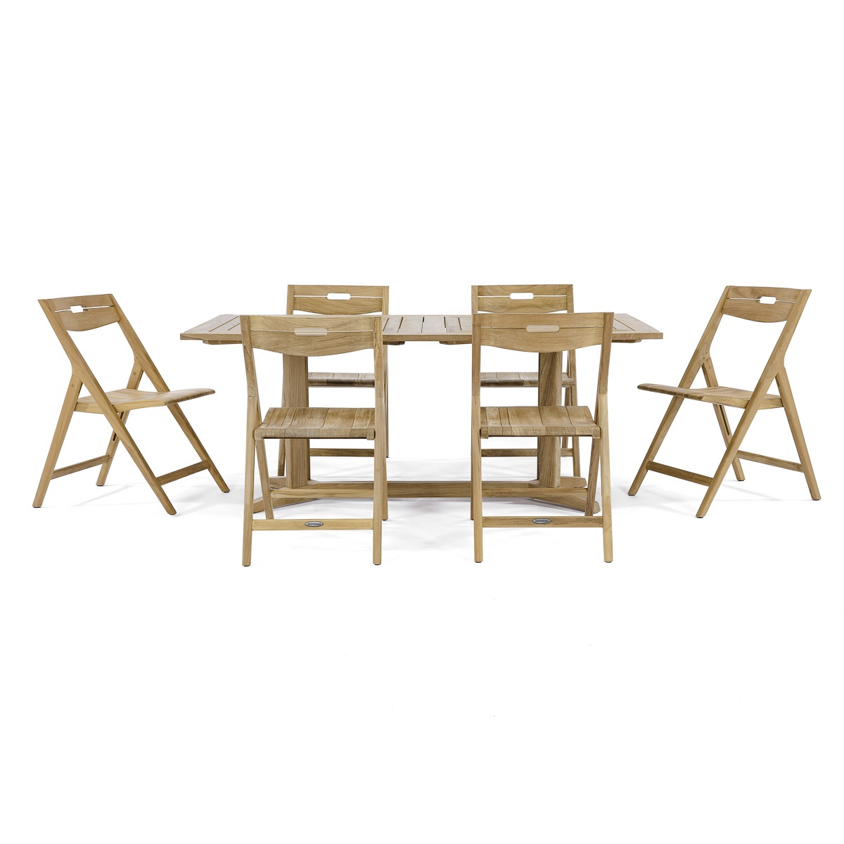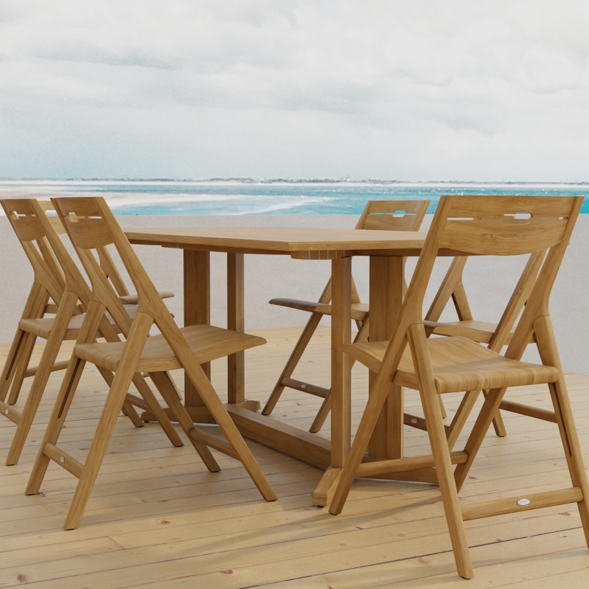 6 ft Pyramid Teak Table: Glides Surf Chair: Glides |