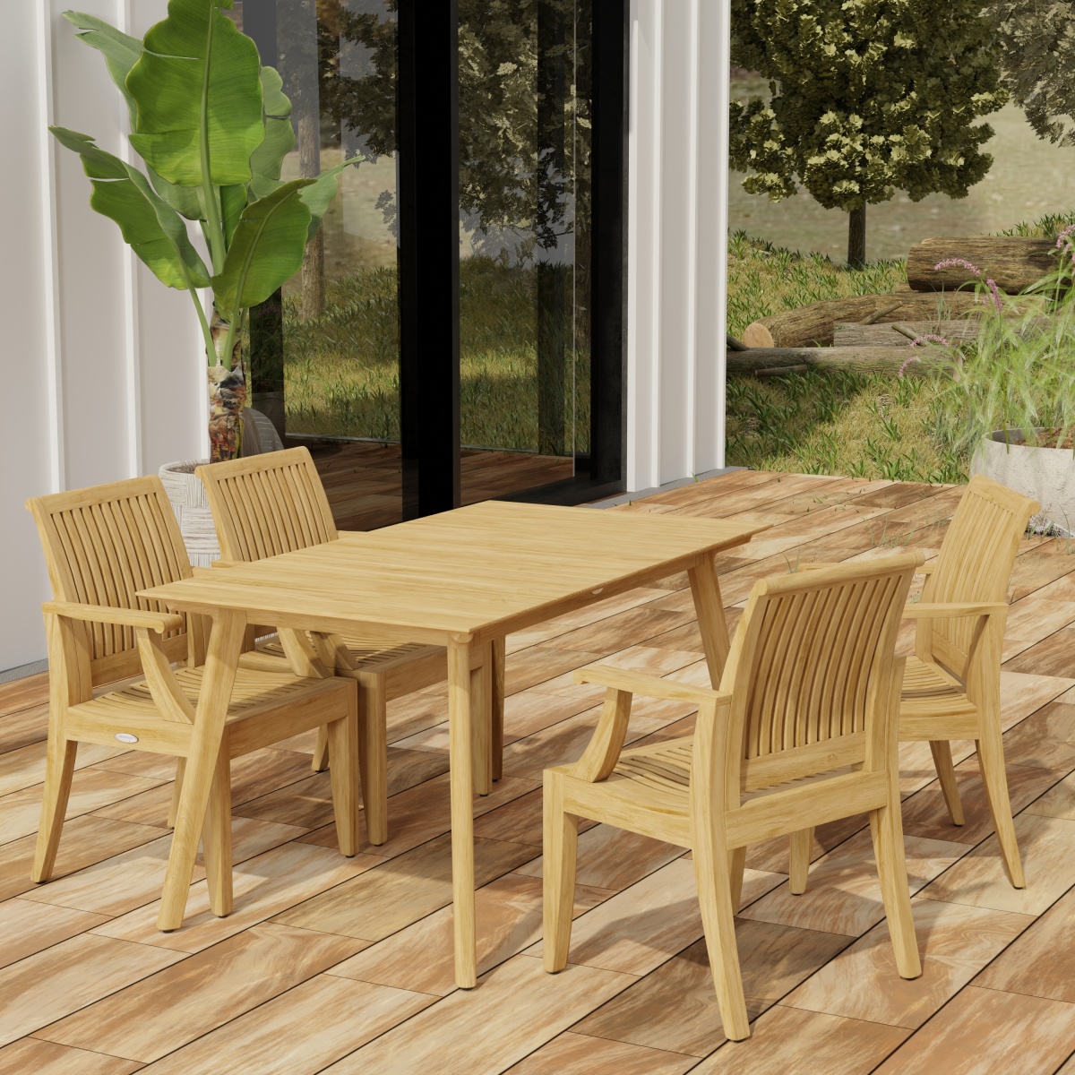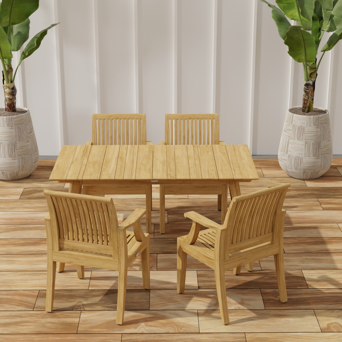 Laguna Teak Dining Armchair: Glides Surf Teak Dining Table: Large Levelers |