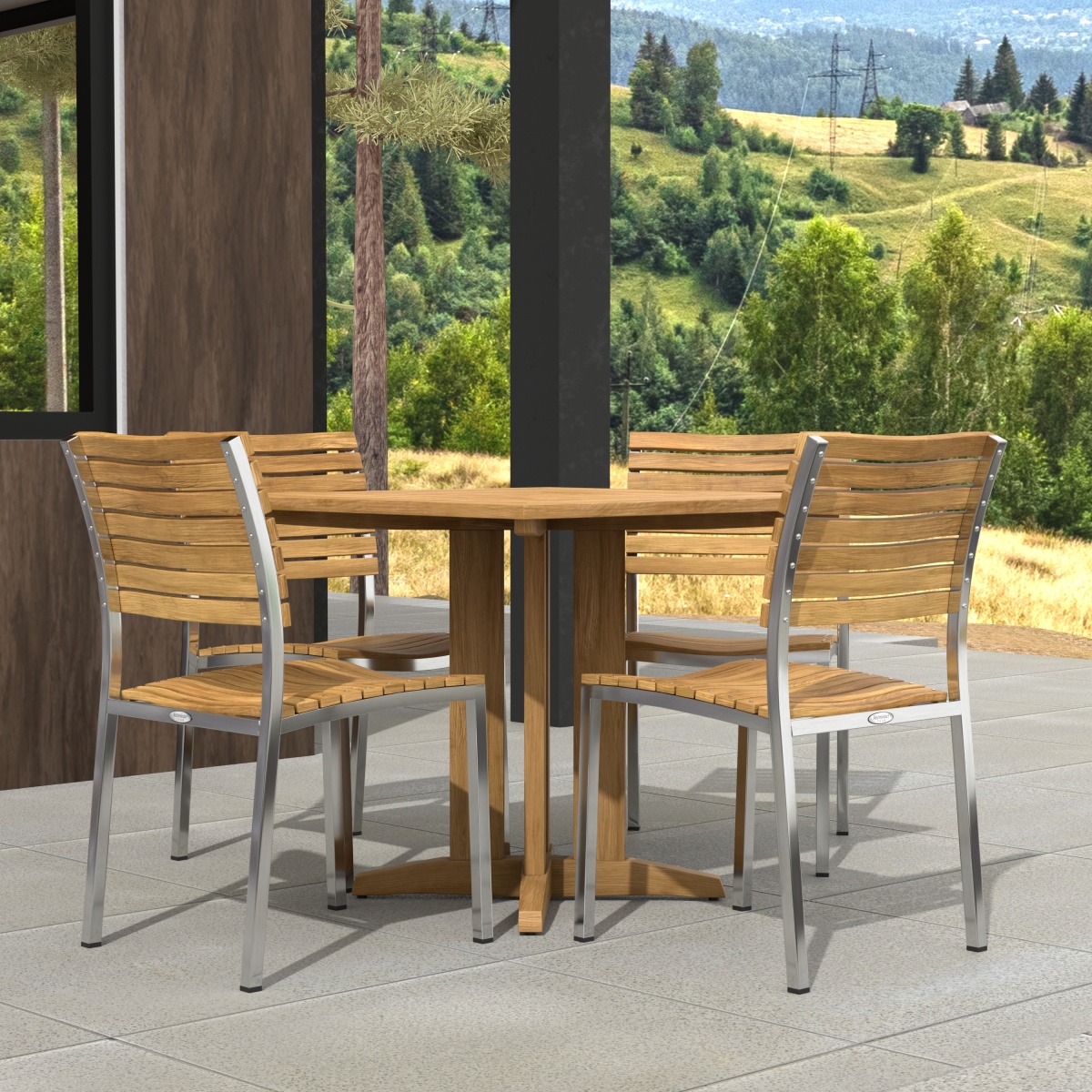 Optional chair cushions made with Quick Dry Foam® core and 100% solution dyed Sunbrella fabrics. Crafted with SVLK Certified Grade A Teak harvested from sustainable plantations in Indonesia, and powder coated aluminum. Every piece is precision manufactured to standard specifications for commercial and residential use.