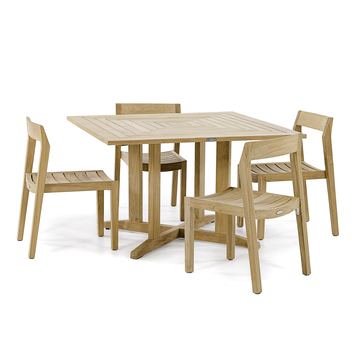 Horizon Teak Side Chair: Glides 48" Pyramid Teak Table: Glides |